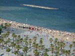 Puisqu’il fait beau, nous décidons de relever un défi : traverser la ville jusqu’à Monjuic à pied, en passant par les petites rues, pas forcément touristiques, de la capitale catalane. Ce périple nous entraîne dans des recoins inconnus, certains ne valant pas franchement le coup, à la Plaza de Catalunya où nous croisons Los Indignados et enfin Monjuic… Non sans prendre un dernier chemin de traverse entre bois et barbelés… Mais la vue en valait franchement la peine avec, enfin, la plage à portée de main !