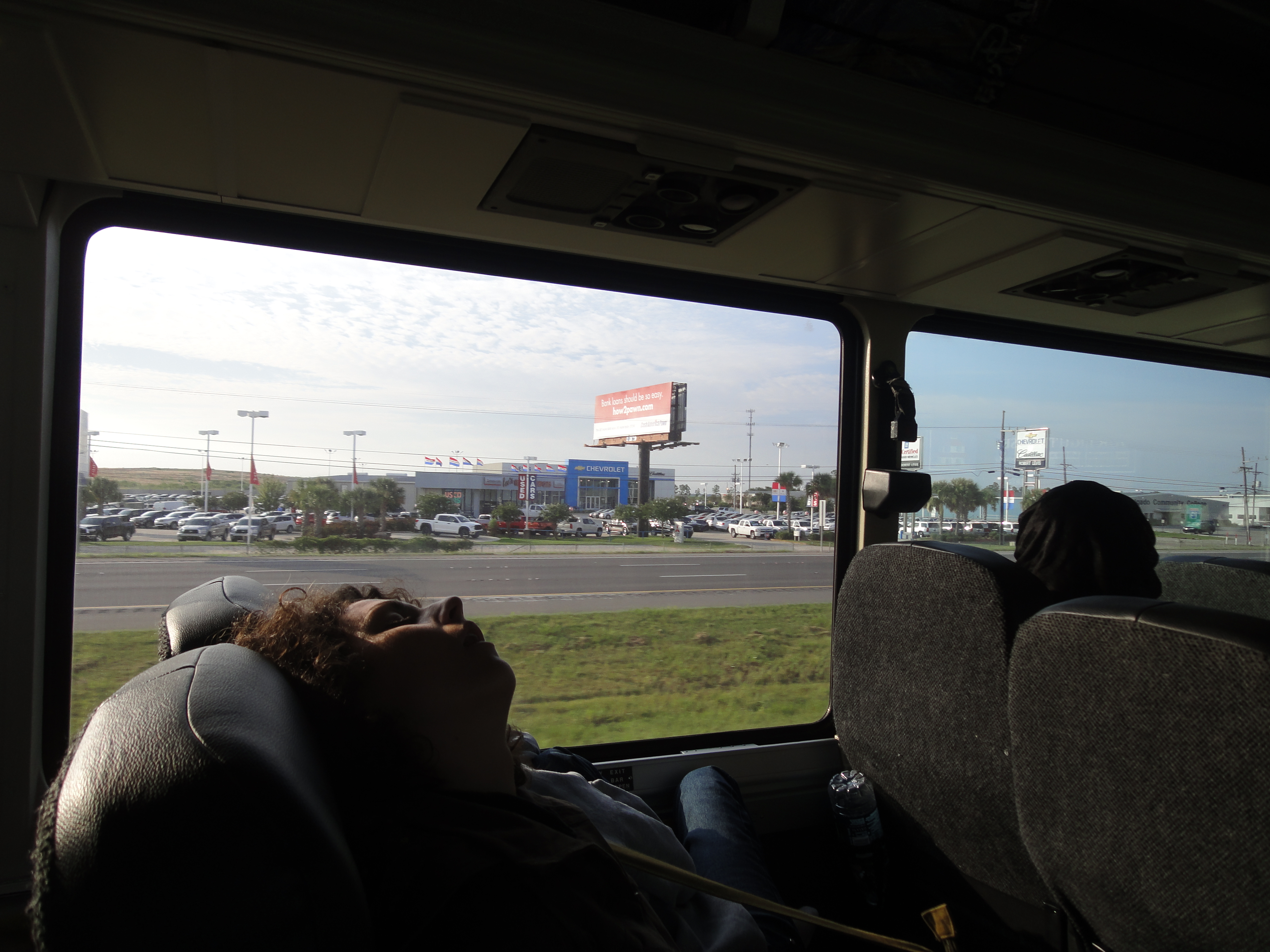 Columbia, Atlanta, Montgomery, Mobile… Autant de visages de l’Amérique, de ses populations… et de clim’ à fond les ballons. Nous sommes couvertes de la tête aux pieds, mais le froid est saisissant. Mes demandes à l’une des conductrices resteront vaines. Il faut dire que nos compagnons de voyages sont tous en tongs et tee-shirts… Si l’on a un conseil des fois que vous vous aventuriez dans un tel périple, prévoyez les couvertures !