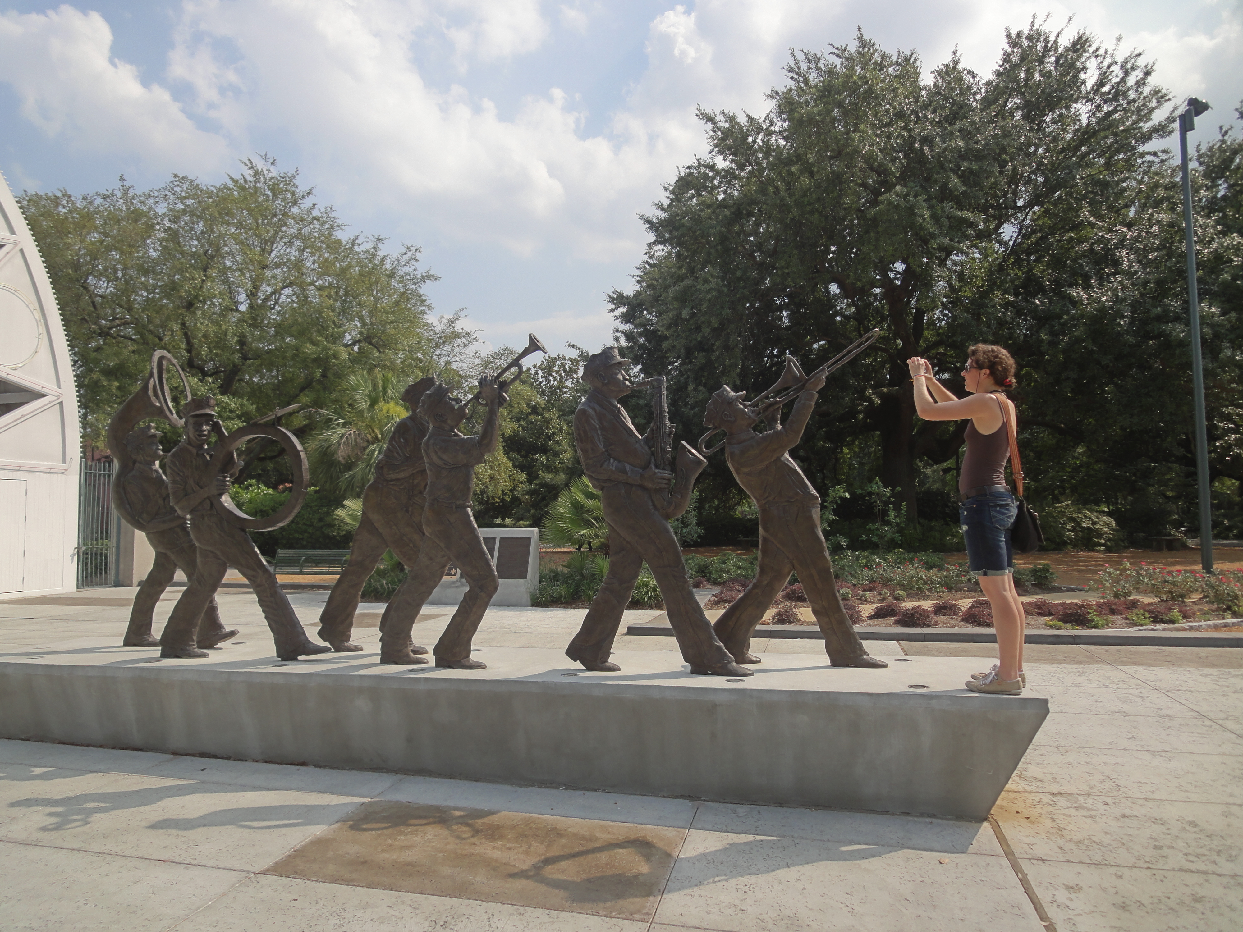 De retour en ville, nous nous posons à l’ombre des arbres du Louis Armstrong Park. Il est splendide, avec de superbes sculptures de musiciens.