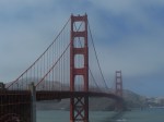 Nous déambulons entre rochers, océan au large et maisons cossues aux superbes fleurs, sous un vent qui fouette, jusqu’à rejoindre le pied du Golden Gate. Un conseil : partez tôt le matin car dès le début d’après midi, même fin d’après-midi, la brume se lève et les photos sont tout de suite moins sympas.