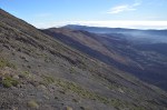 À la fin de notre temps autorisé, nous reprenons le téléphérique. Une fois redescendues, nous empruntons l’un des sentiers de rando, en contrebas du Teide, le numéro 16, sous 20 degrés. Parfait. Compter 1h45 avec, à perte de vue, des roches, du sable et un ciel bleu…