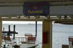 Au bord de l’eau, des chaises longues nous accueillent pour admirer le coucher de soleil. À côté, un panneau « Welcome to paradise ». Rien à ajouter…