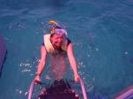 Le temps de navigation jusqu’aux spots d’observation n’est pas trop long – je dis ça pour les personnes fragiles en mer, comme moi par exemple… Le premier arrêt sur la barrière de corail n’a rien d’exceptionnel. L’eau est un peu floue aussi alors ça complique la vision. Et elle manque de quelques degrés. Au bout d’une vingtaine de minutes, on reprend le bateau en direction du second arrêt.