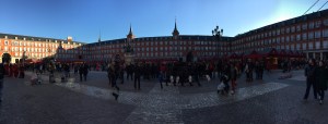 Un détour à pied par la Plaza de Mayor, typique de l’architecture espagnole (plaza de la Constitución à San Sébastian par exemple). Et Il est déjà temps d’aller reprendre des forces, à l’hôtel cette fois, car pour l’instant la rhyno-pharyngite est plus costaude que moi.