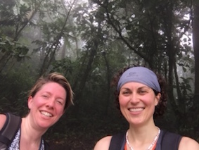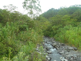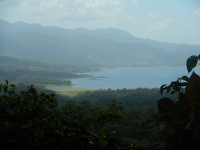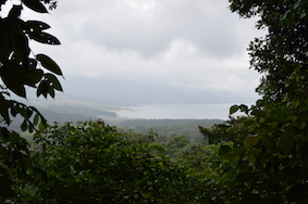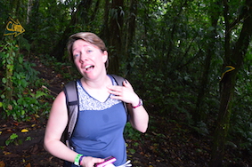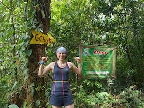 La randonnée démarre plutôt tranquillement jusqu’à un mirador qui permet d’admirer le Lago Arenal (enfin, à cette heure-là, il est encore plutôt couvert…). Et c’est là que ça se corse. À partir de ce point, nous n’arrêtons pas de monter ou de descendre. Bref, en effort permanent pendant les quatre kilomètres qui suivent. Le chemin, couvert par la jungle (donc au frais, pour le côté positif, ou du moins un peu moins chaud), est boueux et la glissade est vite arrivée. Les 400 derniers mètres sont les plus difficiles, on croit ne jamais les voir se terminer. Mais, quand même, au bout de 2h20, on touche au but. La Laguna Verde. Avec une frustration certaine car la brume n’est toujours pas levée et on ne voit strictement rien. Ce lagon, où l’on peut normalement se baigner, n’est qu’une marque grise qui ne donne pas envie.