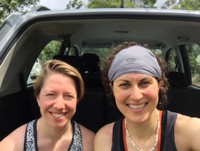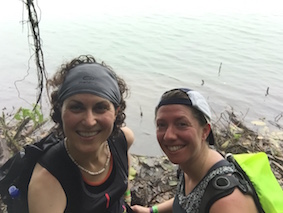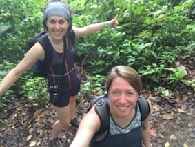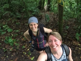 Quand nous retournons à la voiture, 5’00’59 se sont écoulées (cela inclut les temps de pause photo, boisson…). À la montre GPS, nous découvrons notre dénivelé de 750 mètres avec une altitude maximale de 1 118m (une distance de plus de 8km mais parfois le signal a été perdu alors…). Nous avons bu nos 3,4 L d’eau. Nous sommes bien noires de boue, les jambes éraflées et les fringues trempées de sueur. Mais avec la satisfaction du challenge accompli !