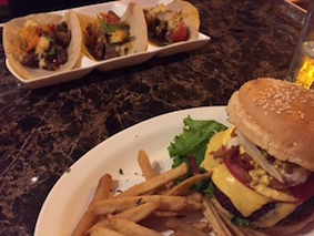 En attendant, c’est descente à La Fortuna pour le dîner. Sur l’avenue centrale, nous choisissons Pollo Fortuneño. Plats savoureux mais service très longuet (et pas forcément sympa). On a attendu une heure avant d’être servi. Depuis le breakfast de ce matin, l’estomac était dans les talons !