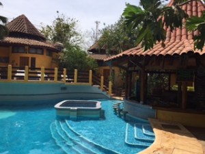 L’hôtel ne disposant pas d’un parking et le conseil étant de plutôt se garer dans un parking gardé, nous déposons notre véhicule à quelques mètres du Palm House Inn. 5 000 colones jusqu’à 7h du matin puis le compteur tourne à 1 000 colónes l’heure. Nous allons donc sans doute un peu accélérer notre programme de demain matin.