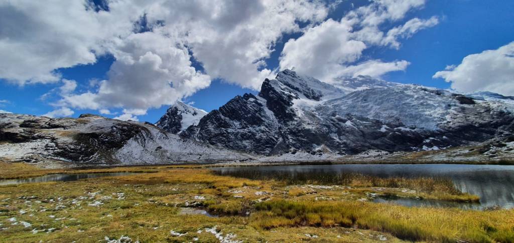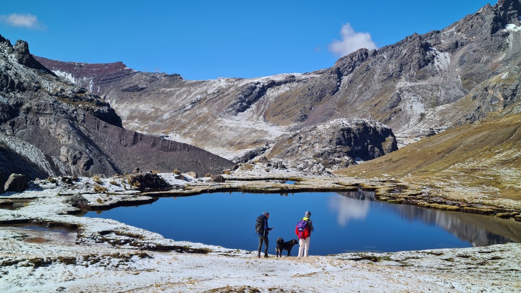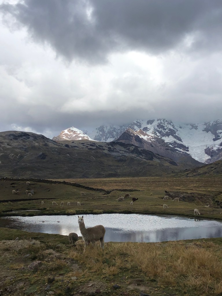 Nous avançons de paysages en paysages merveilleux, en foulant les restes de neige de cet hiver, en croisant des alpacas et avec rien d’autre, à perte de vue, que le ciel, des lacs et nous.
