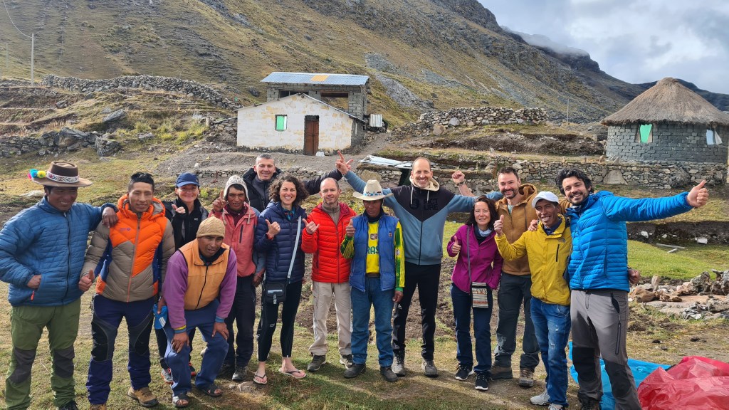 Nous aurions dû nous installer sur une zone qui comportait une maison en dur. Chauffée aux panneaux solaires. Soit la perpective d’un dîner presque au chaud. Mais on s’est fait griller la priorité. Nous devrons donc marcher 20’ de plus pour retrouver notre équipe adorable de quechuas en bordure de rivière dans la vallée Jampa.