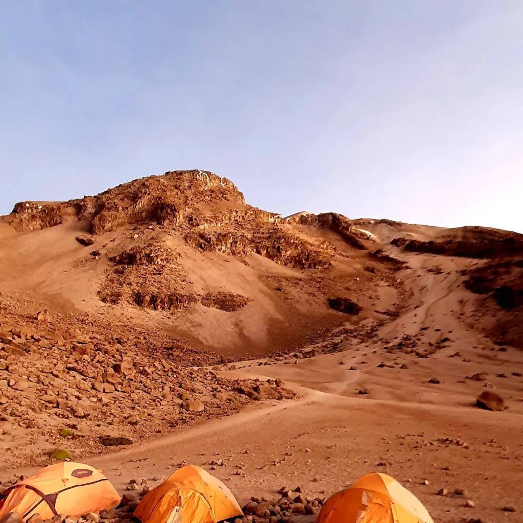 La descente sera bcp plus rapide ! En 58’, j’ai rejoint le campement. Je me suis amusée à glisser dans les cendres en courant. Je suis surtout heureuse d’avoir recouvré mes terminaisons nerveuses avec le soleil qui nous a enfin rejoints et qui nous réchauffe.