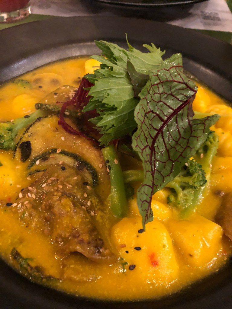 Je prends les gnocchis sauce citrouille, accompagnés de légumes et un tiramisu sur lit de brownie, une tuerie !