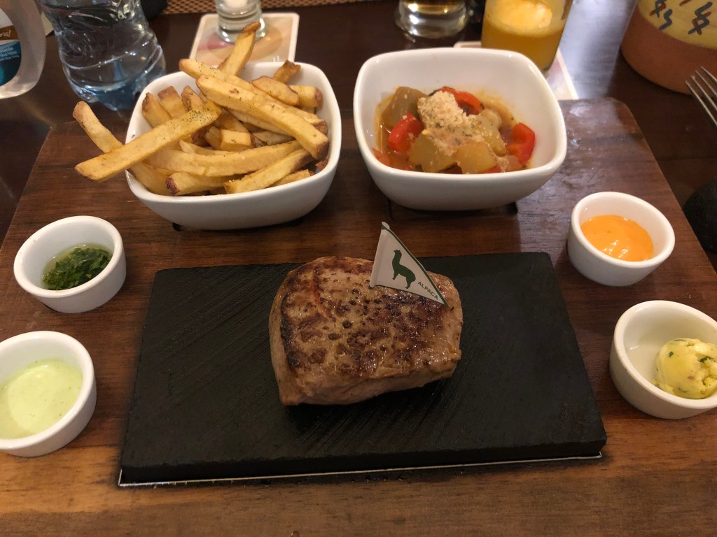 Je me laisse tenter par de l’alpaca pour ce dernier repas et c’est fantastiquement bon. En dessert, le brownie évidemment avec sa boule de glace vanille.