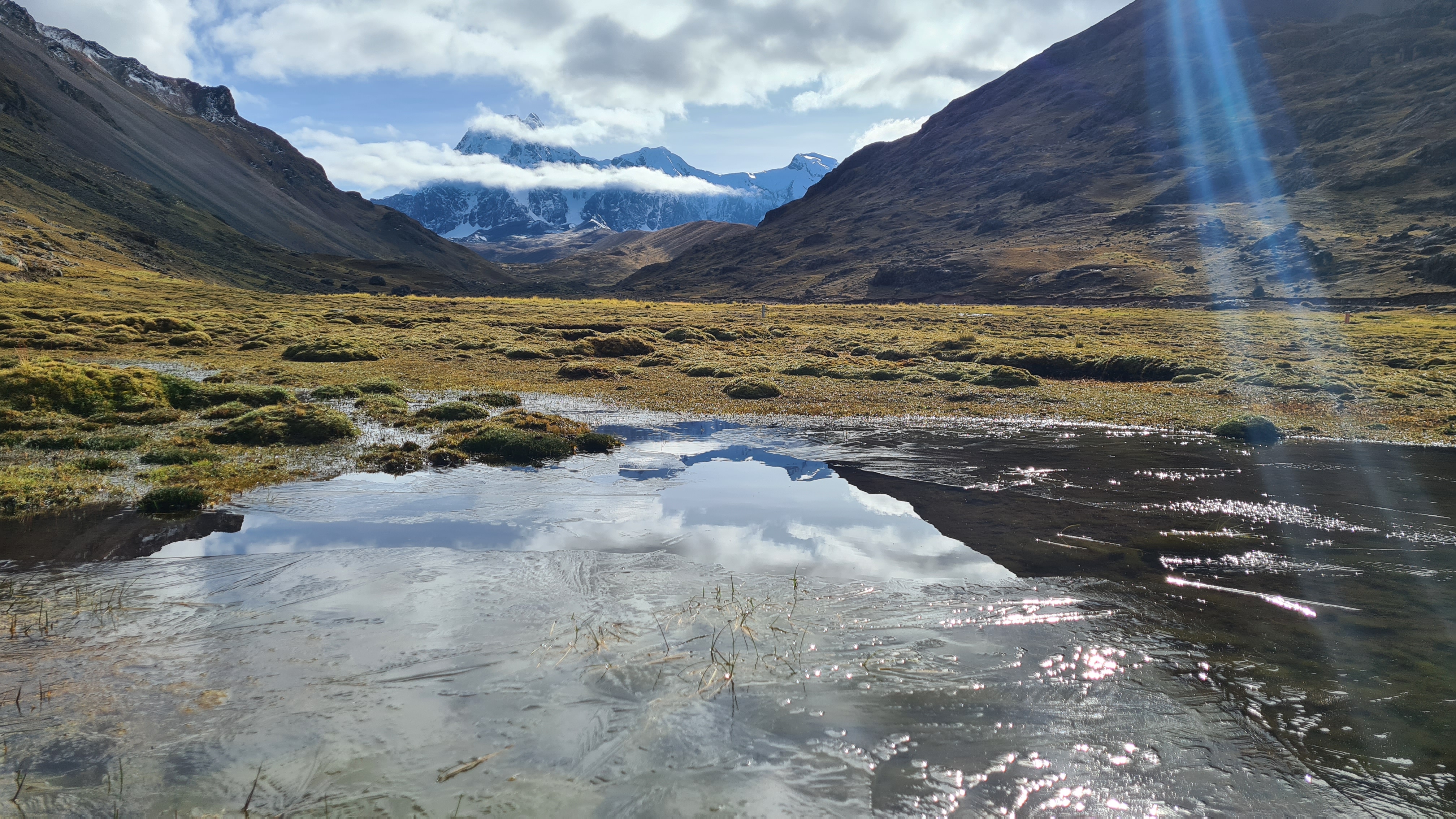 Nous avançons de paysages en paysages merveilleux, en foulant les restes de neige de cet hiver, en croisant des alpacas et avec rien d’autre, à perte de vue, que le ciel, des lacs et nous.