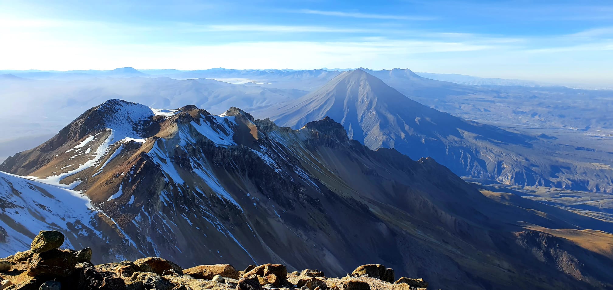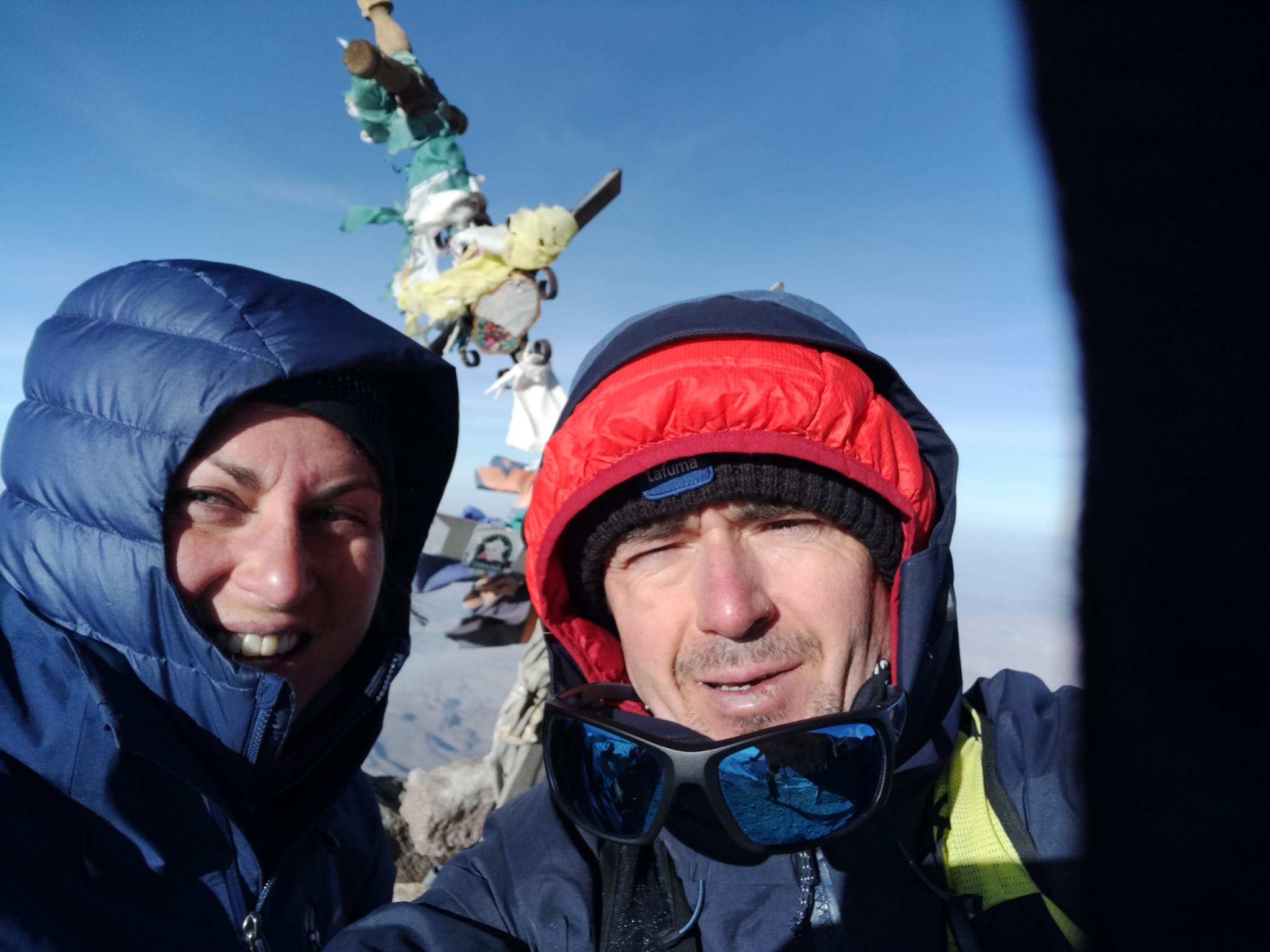 Finalement, nous mettrons 3h54 pour tutoyer les 6 074m – dont près de deux heures dans la nuit noire – qui nous livrent une vue magnifique sur le Misti et les volcans alentours. Les 200 derniers mètres de dénivelé nous semblent interminables. Le chemin est escarpé, il y a de la neige gelée. Au sommet, nous immortalisons notre exploit rapidement car le froid nous paralyse. Et, en un glissement de seconde, j’oublie presque tout et je me dis que ça valait vraiment le coup !