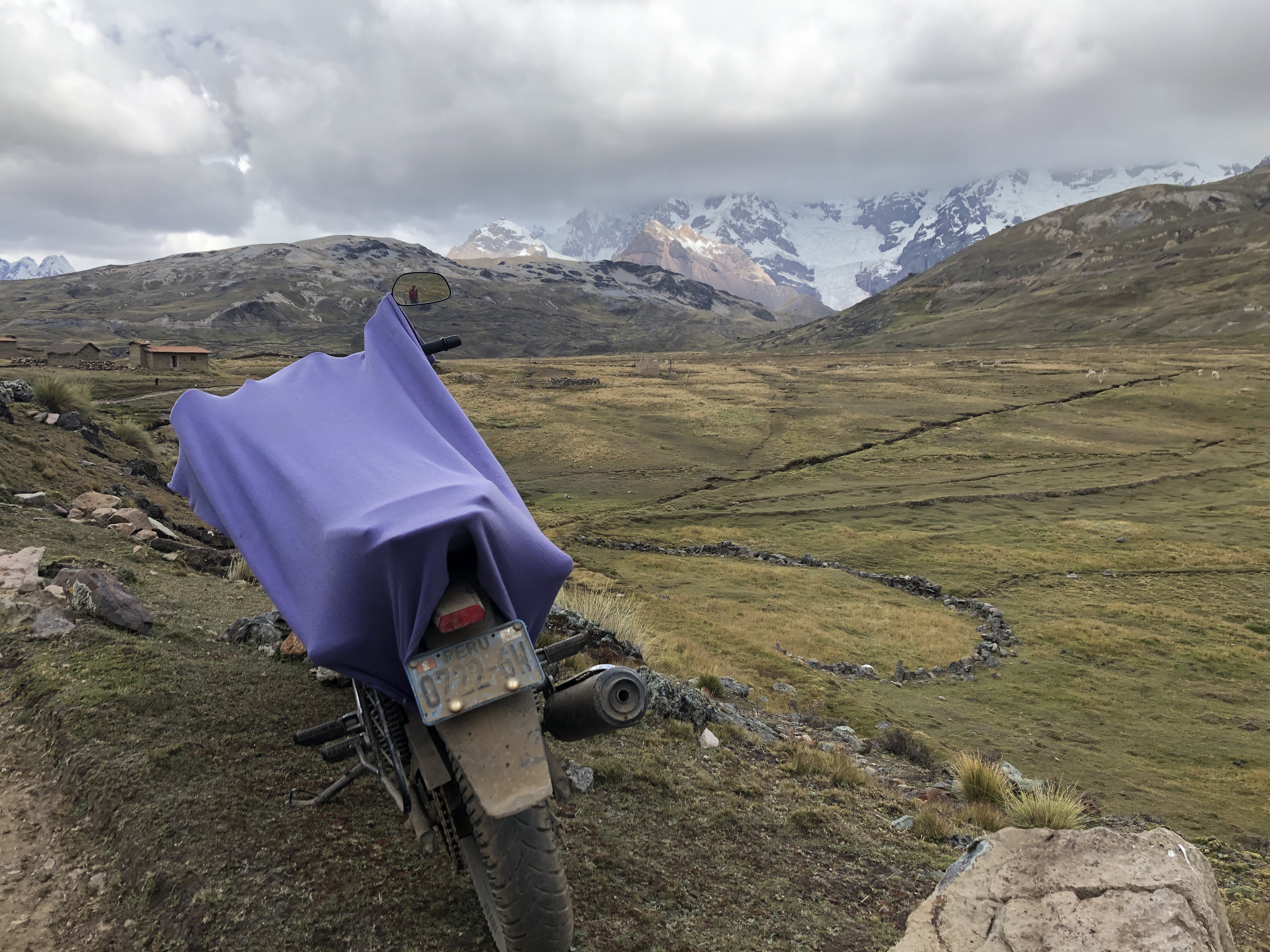 En revanche, c’est la haute montagne. Nous sommes déjà à 4200m et le ciel tourne vite. La marche du jour est courte en revanche, 5,6km pour 200m de D+, elle se fera une bonne partie sous la pluie avec un vent qui la rend encore plus glaciale.