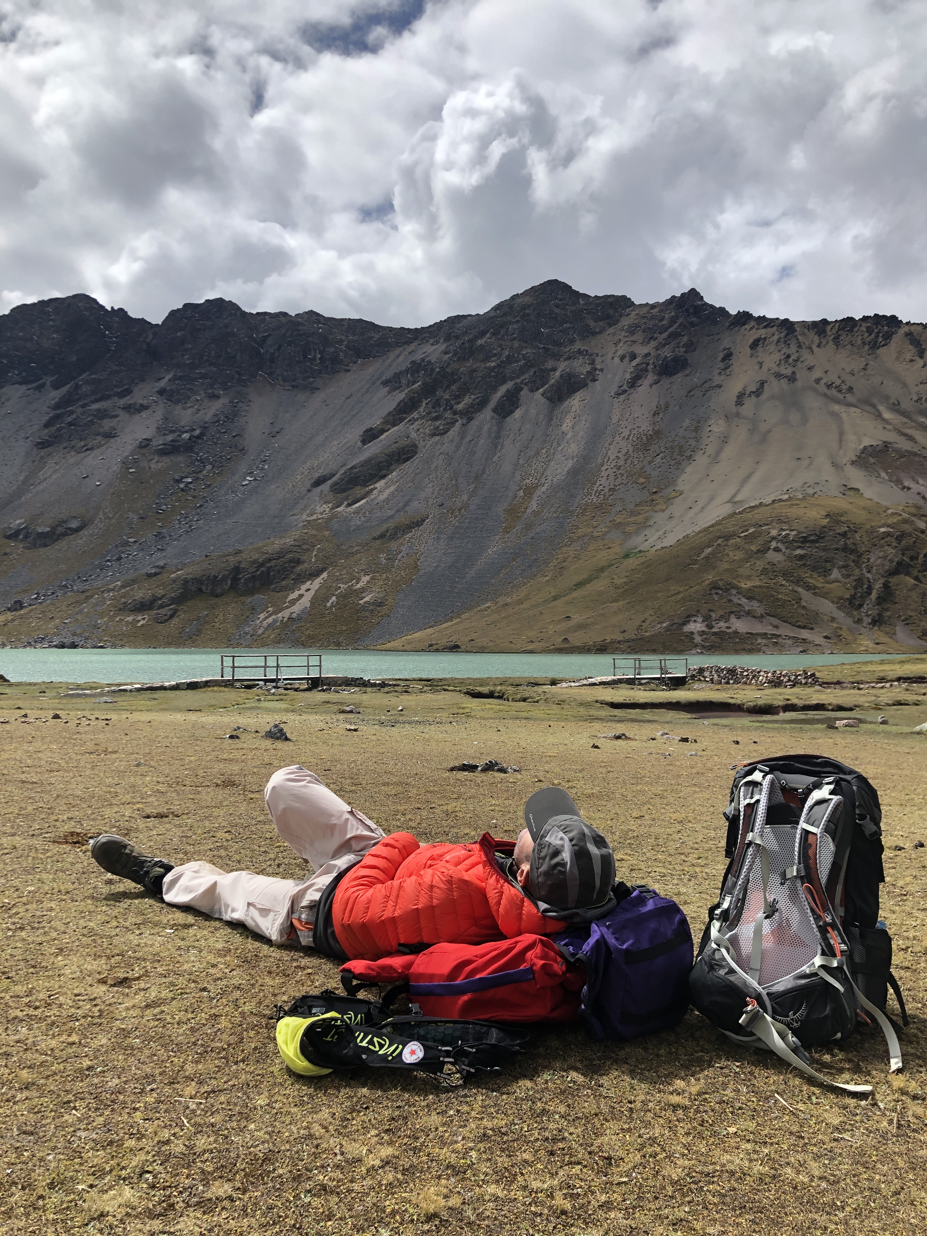 Vers 10h30, nous atteignons notre point de rendez-vous pour le déjeuner au bord du lac Puma Qocha. Notre équipe de quechuas s’affaire à préparer le déjeuner pendant que nous faisons la sieste au soleil…