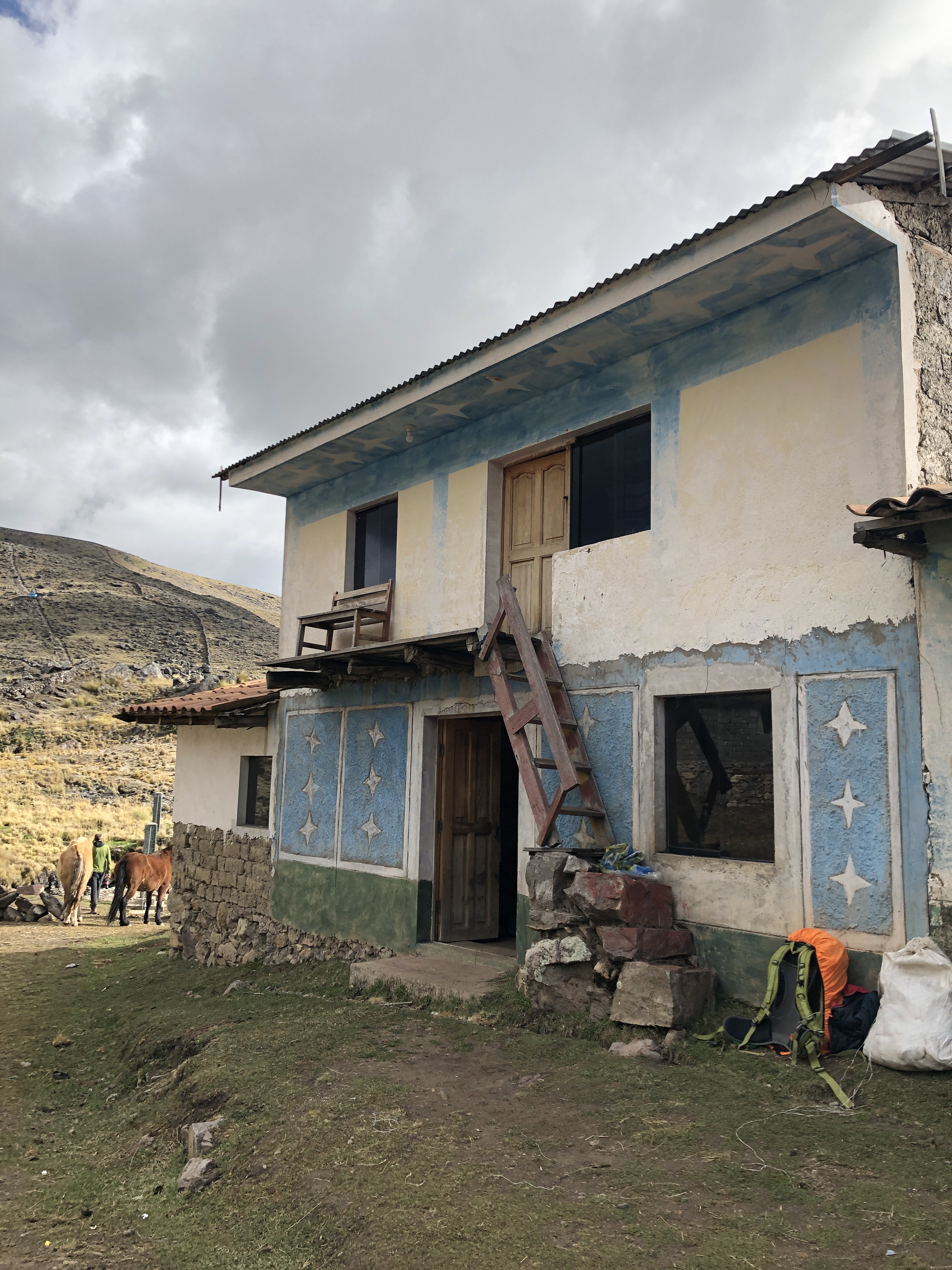 Nous aurions dû nous installer sur une zone qui comportait une maison en dur. Chauffée aux panneaux solaires. Soit la perpective d’un dîner presque au chaud. Mais on s’est fait griller la priorité. Nous devrons donc marcher 20’ de plus pour retrouver notre équipe adorable de quechuas en bordure de rivière dans la vallée Jampa.