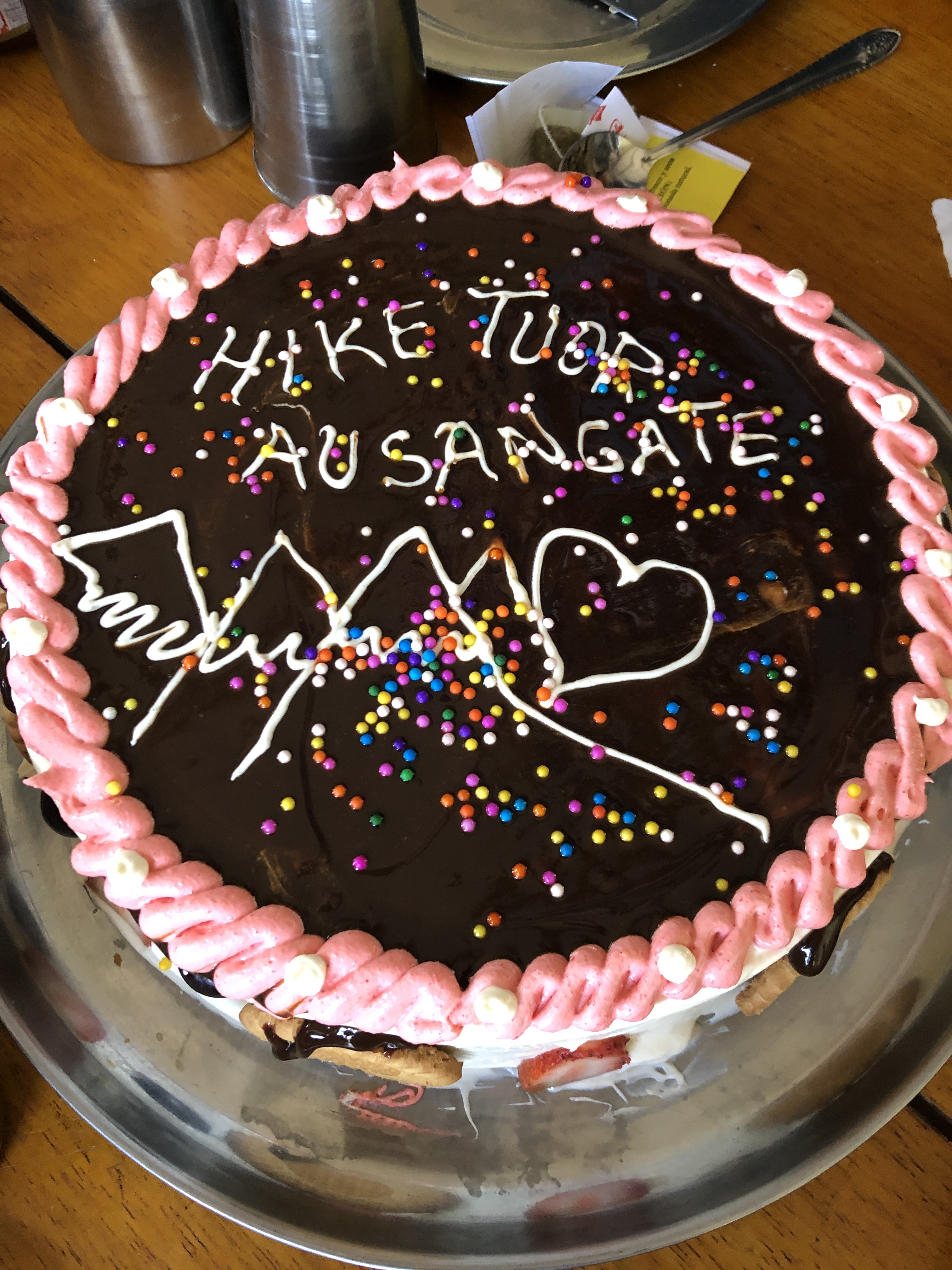 J’en profite pour effectuer quelques emplettes chocolatées et, en repartant je tombe sur les « super hikers » qui ont reçu ma photo du brownie et souhaitent goûter eux aussi !