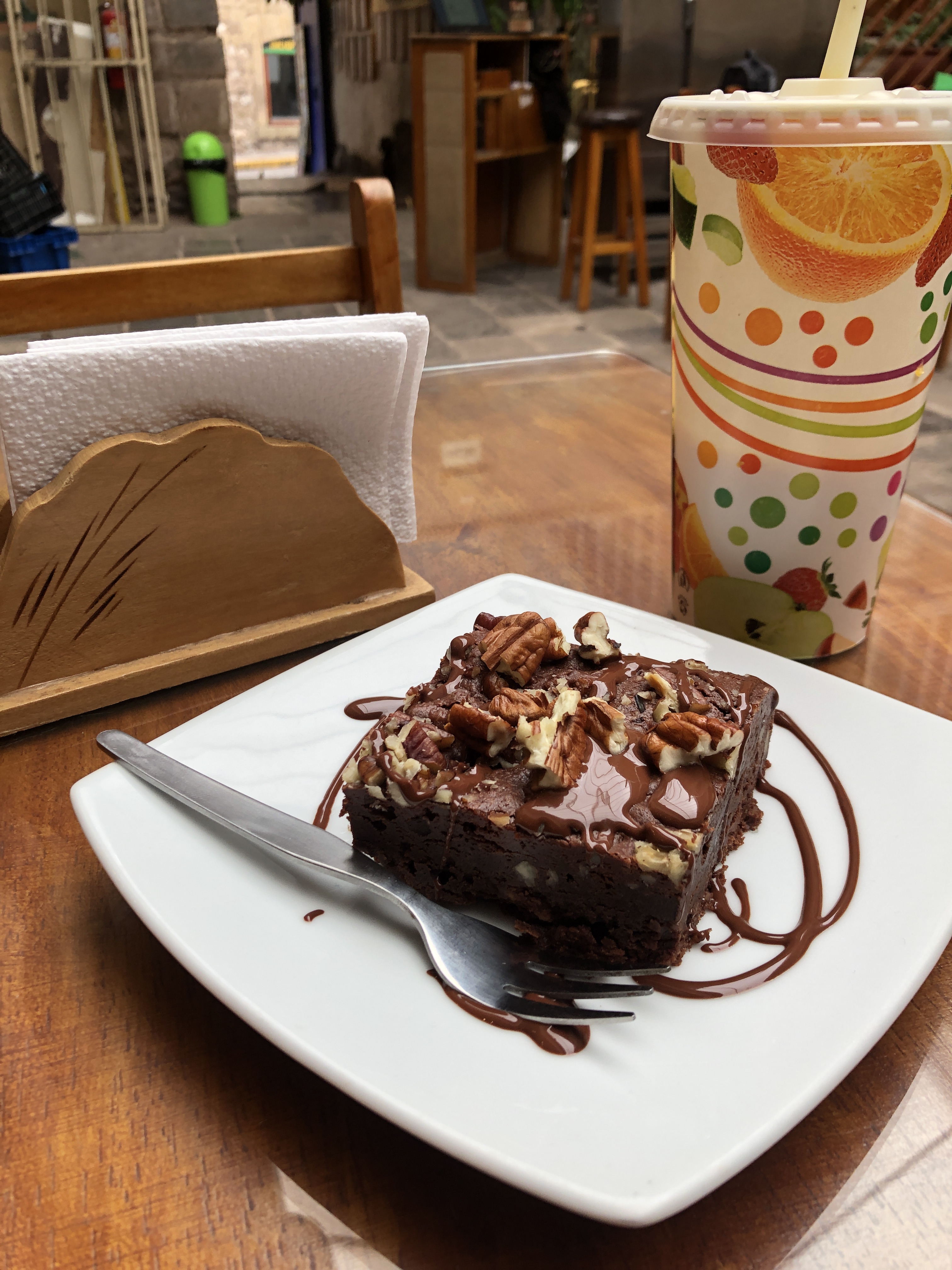 Pour le déjeuner, je quitte mes copains de voyage pour profiter un peu de la solitude. Une escale au mercado San Pedro pour goûter un nouveau jugo natural delicioso puis cap sur le Choco Museo afin de goûter le brownie dont nous parle Matthieu depuis une semaine. Je ne suis pas déçue du voyage gustatif !