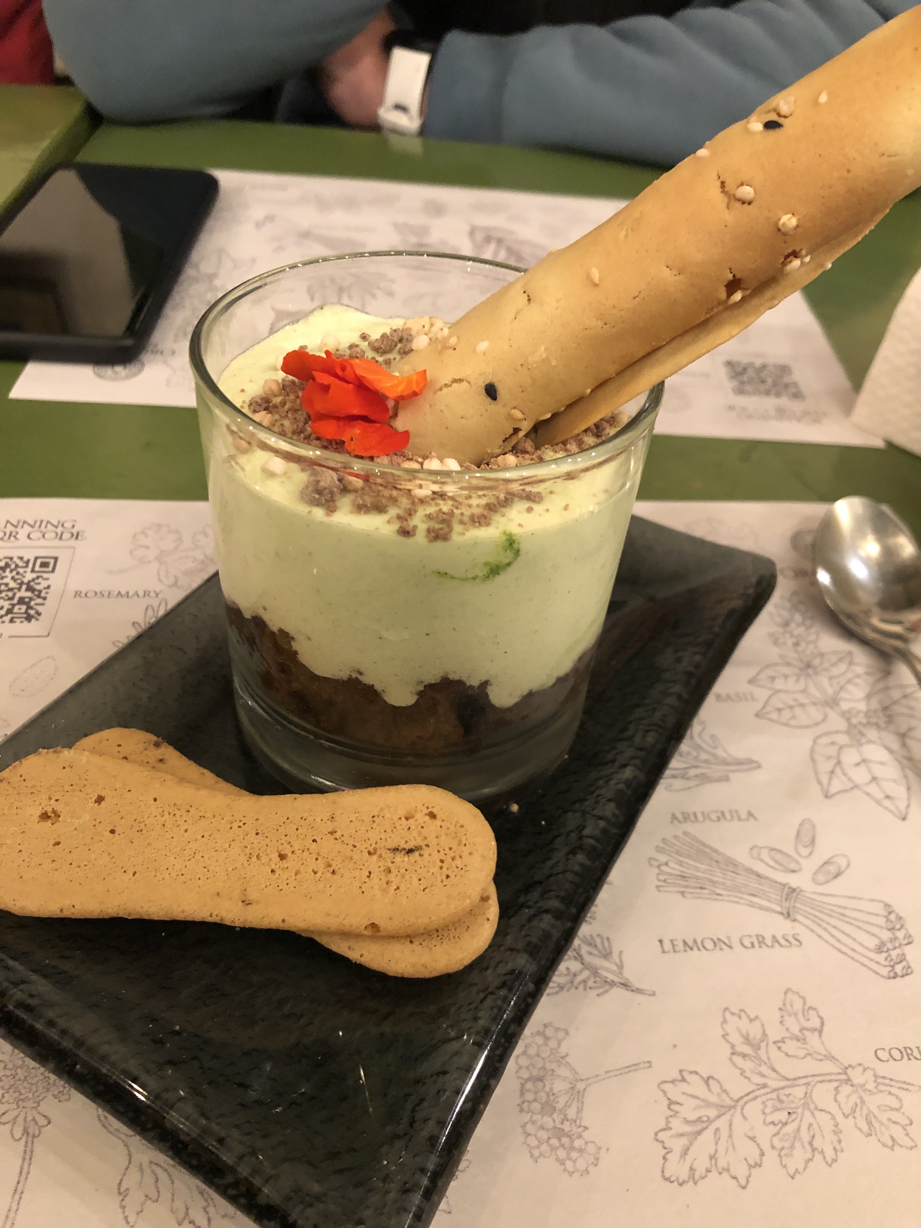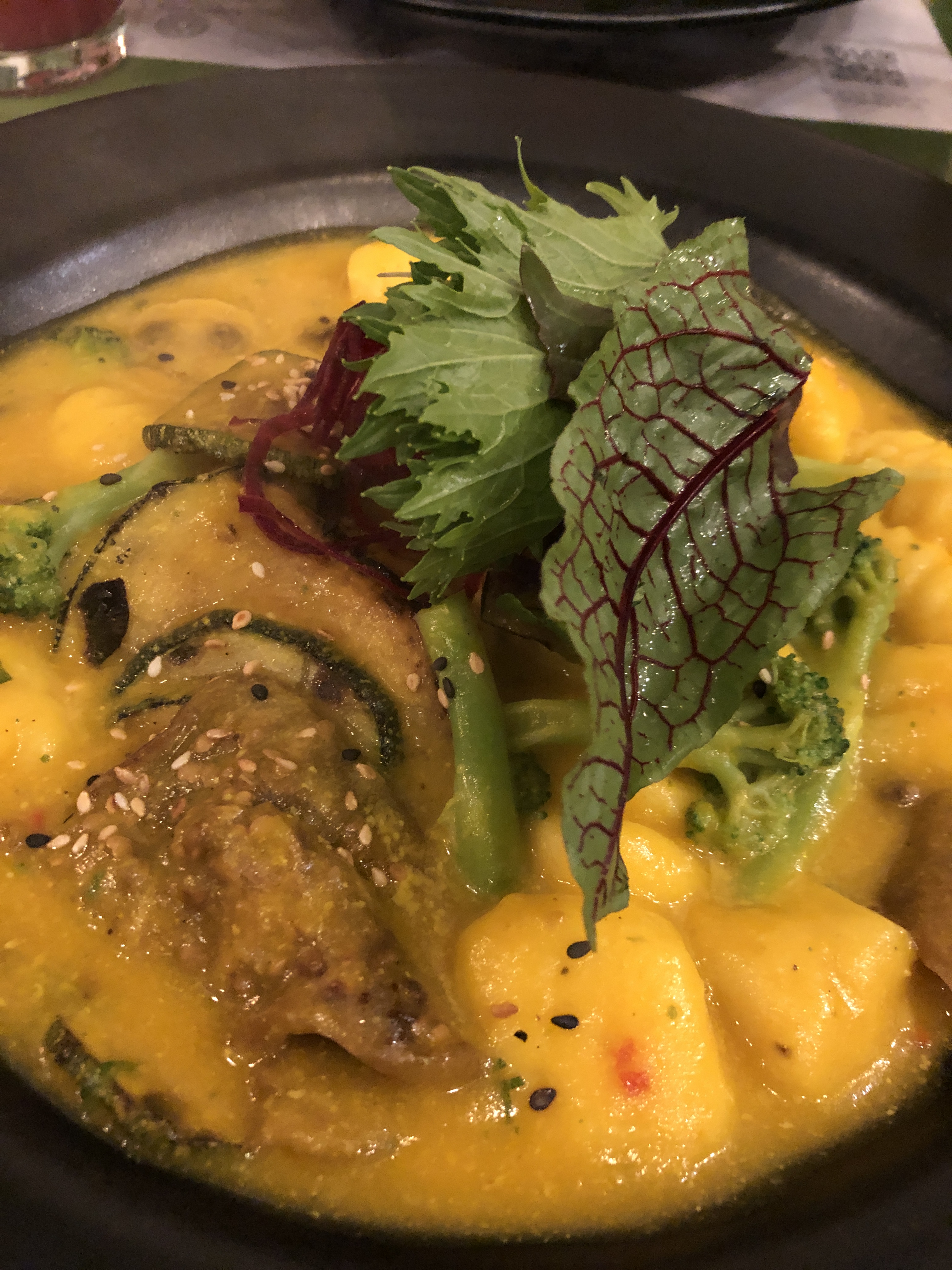 Je prends les gnocchis sauce citrouille, accompagnés de légumes et un tiramisu sur lit de brownie, une tuerie !