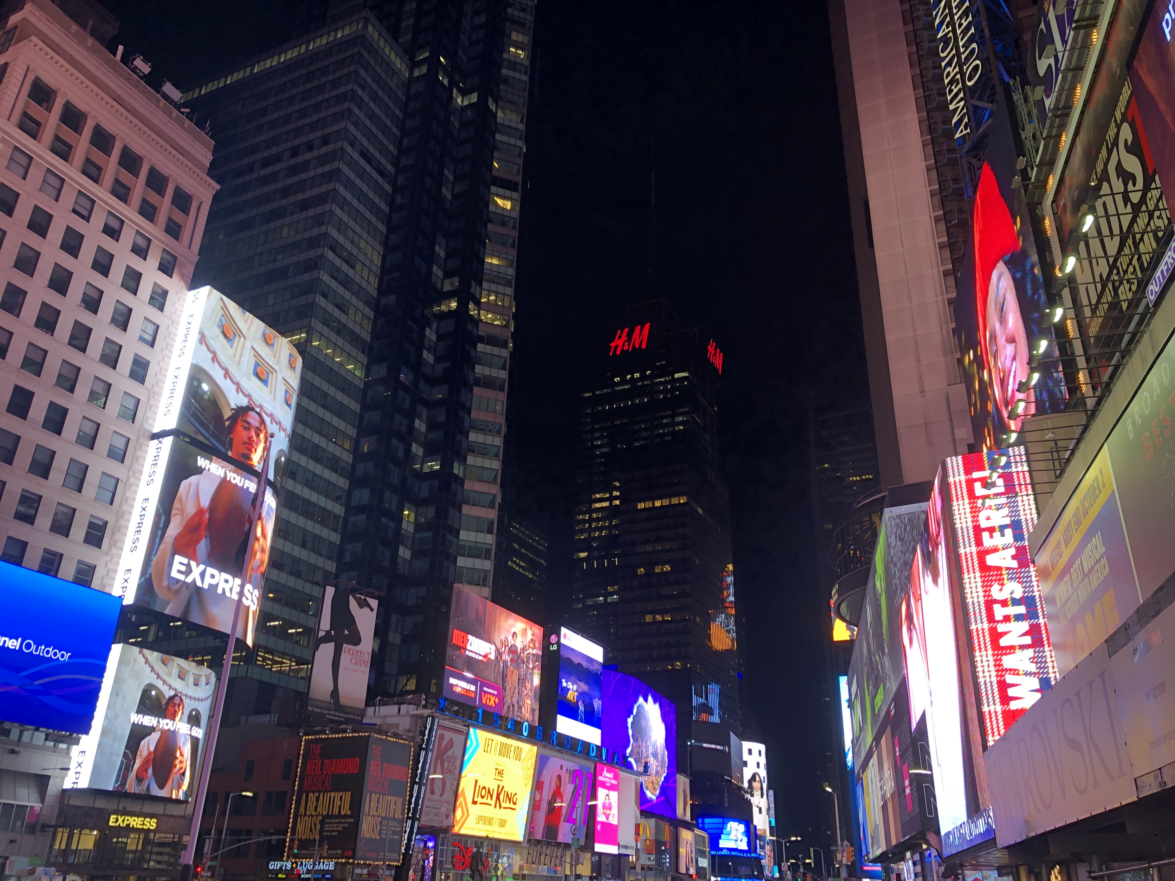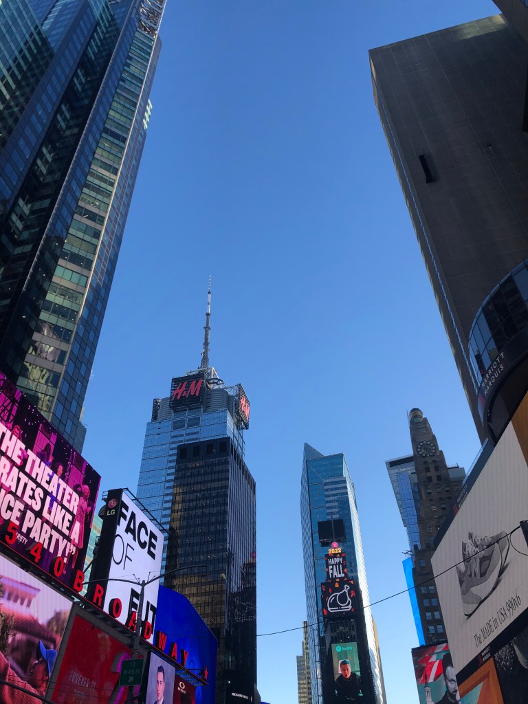 Bon, mes souvenirs sont moins vifs que je ne le pensais et je nous perds un peu. Mais par le plus grand des hasards, on se retrouve en plein Times Square ! Il y a franchement pire comme endroit où chercher son itinéraire.