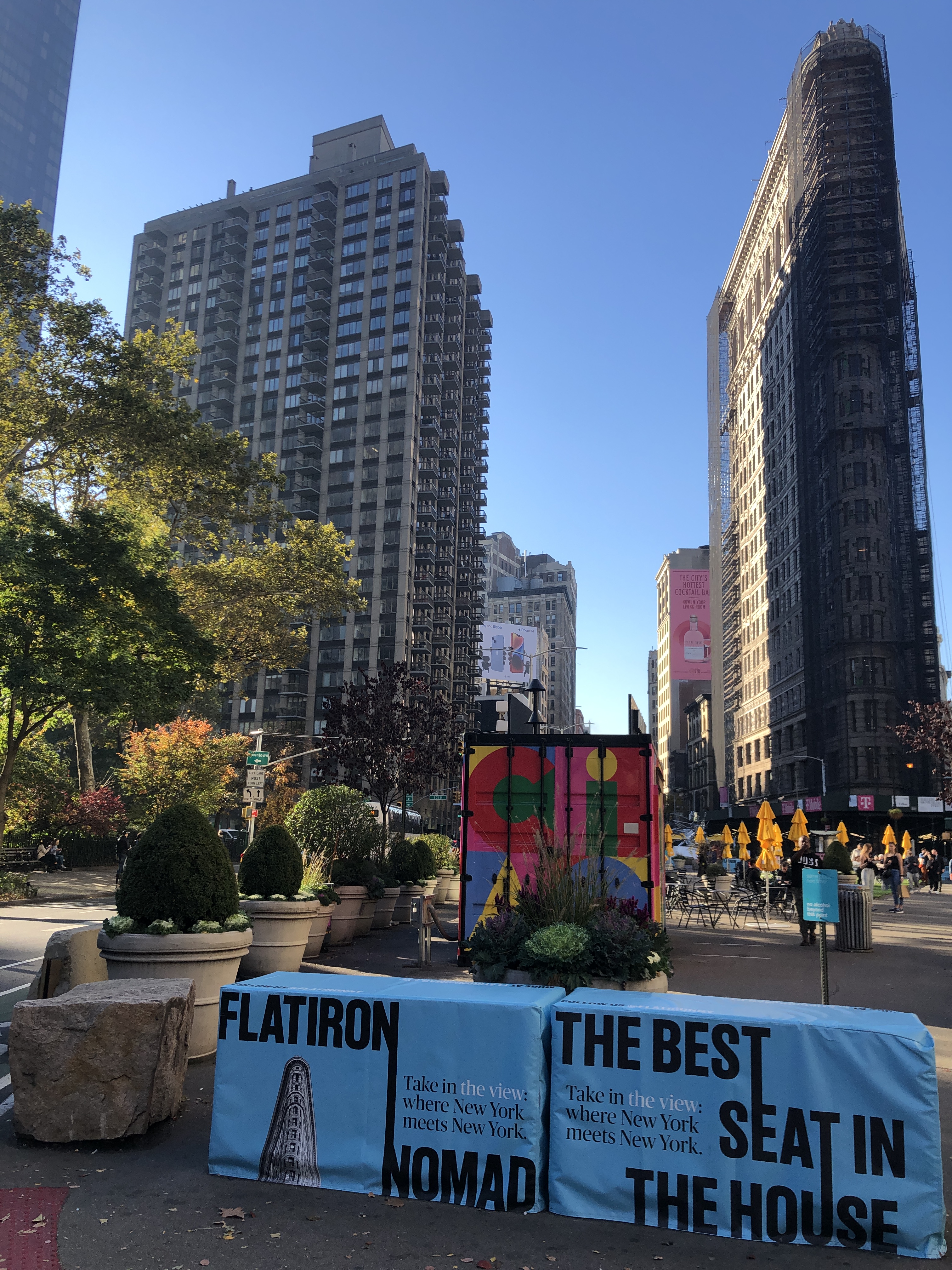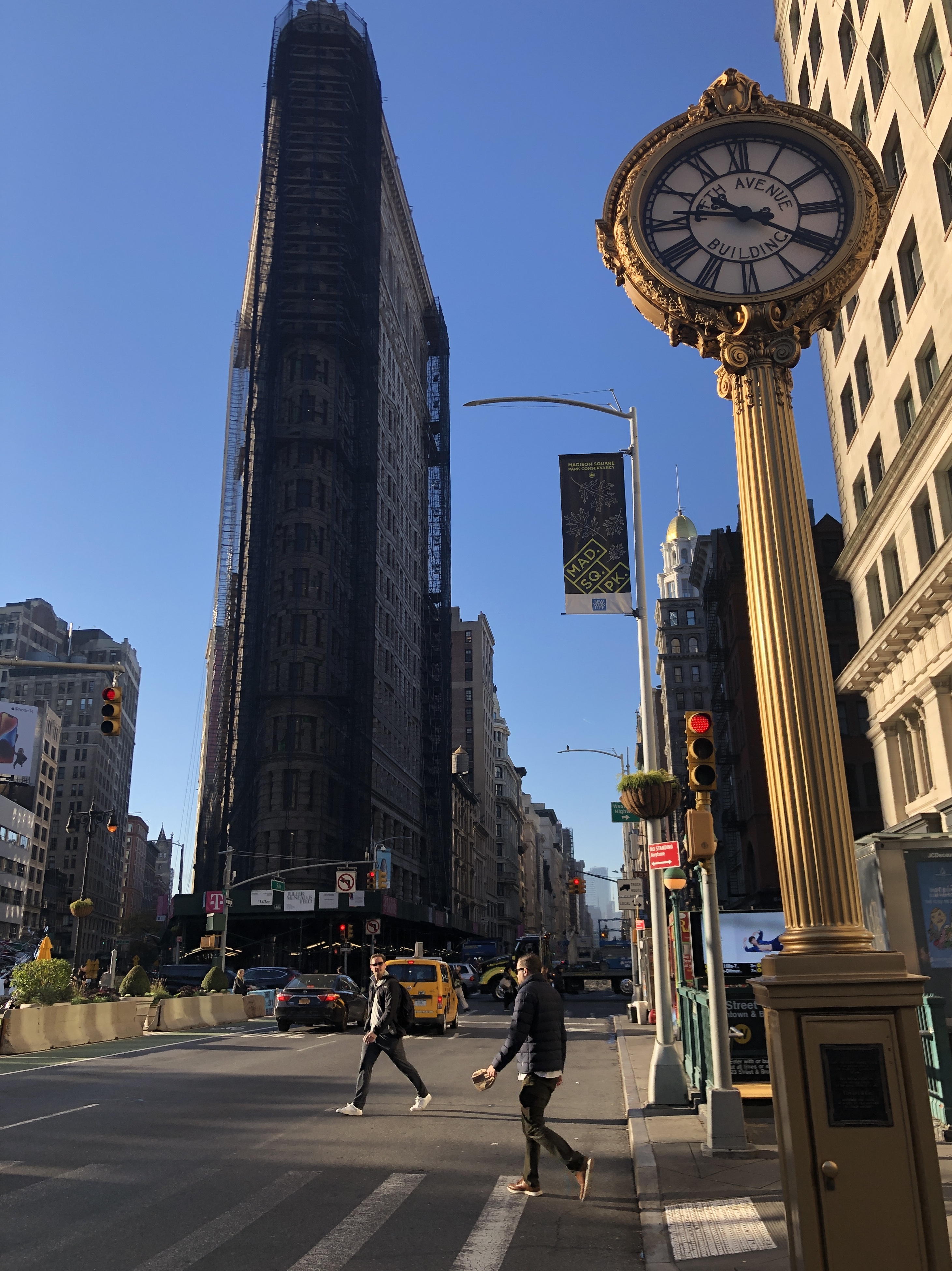 Nous démarrons par le Flatiron, à la façade frontale malheureusement cachée par un échafaudage.