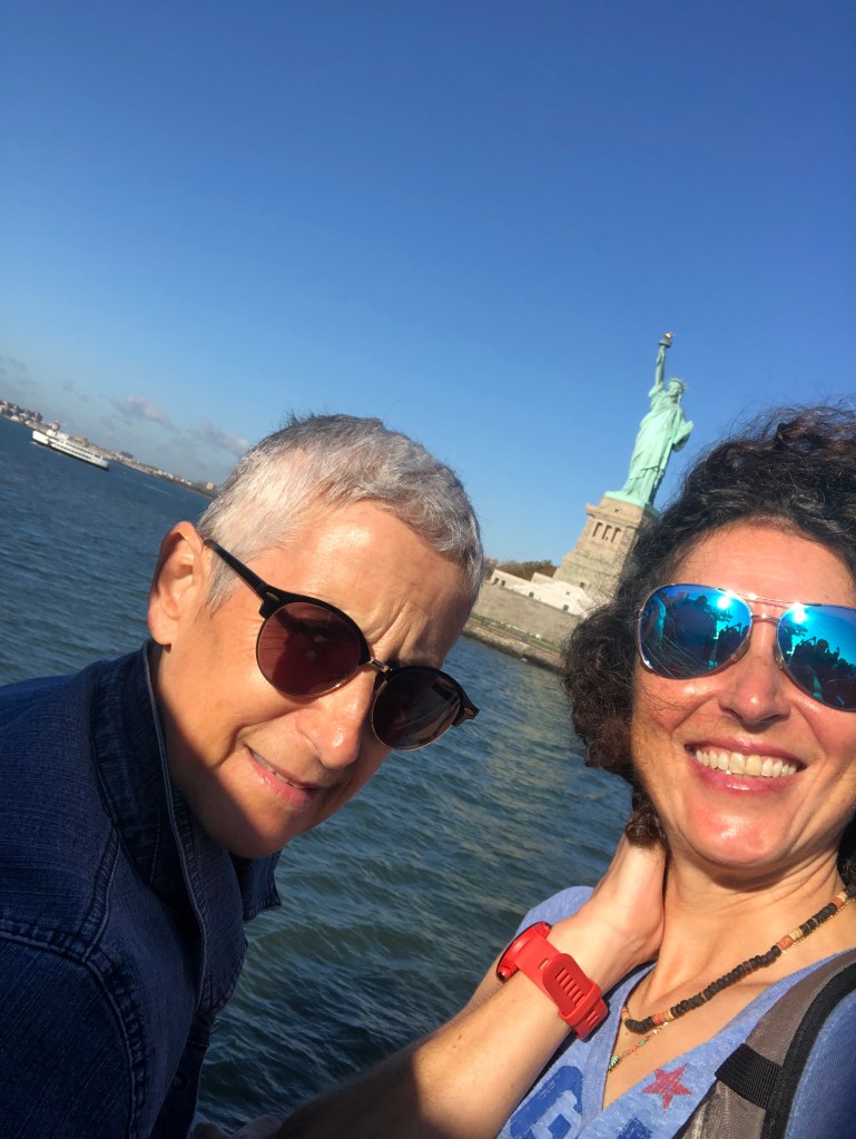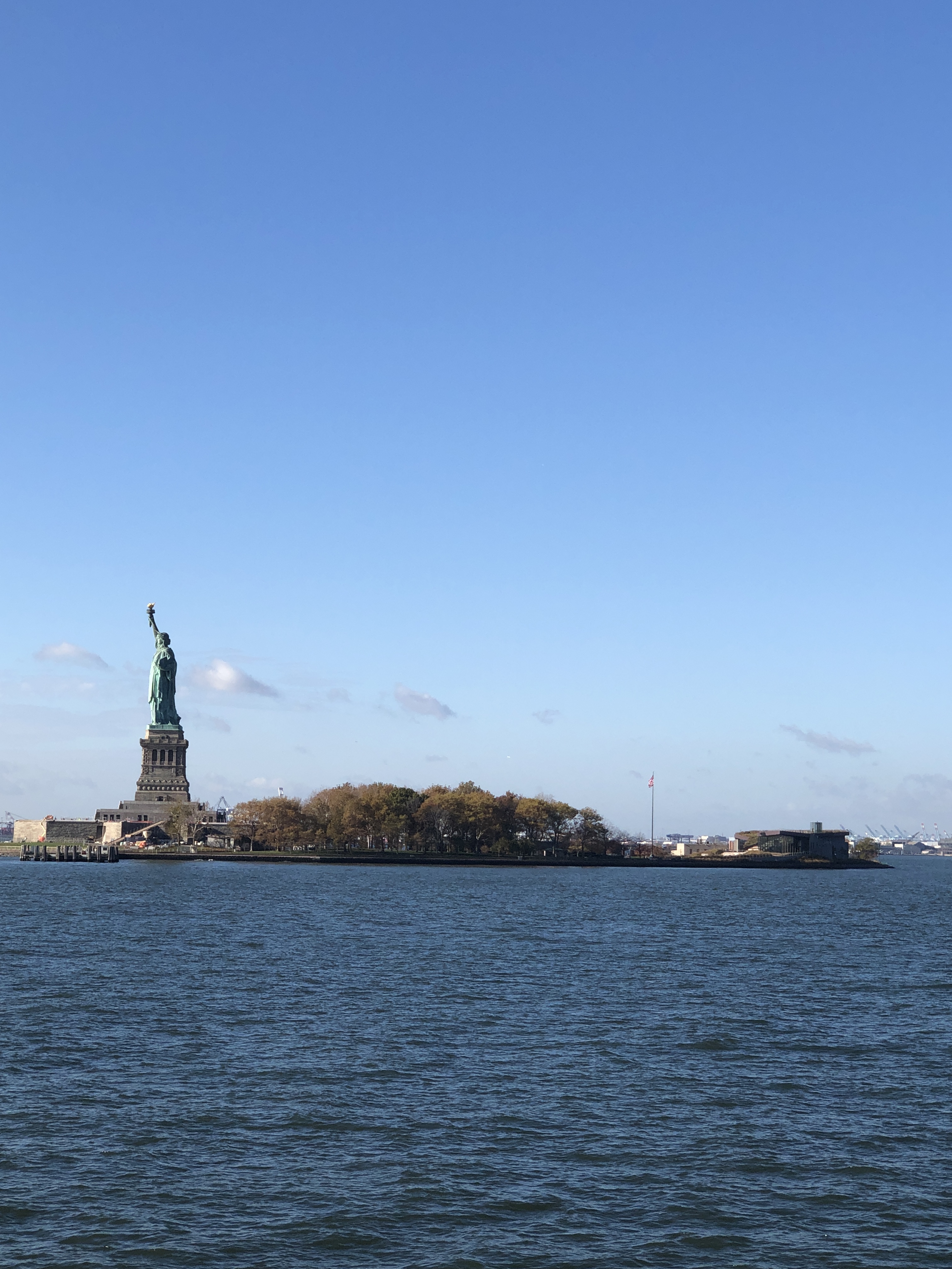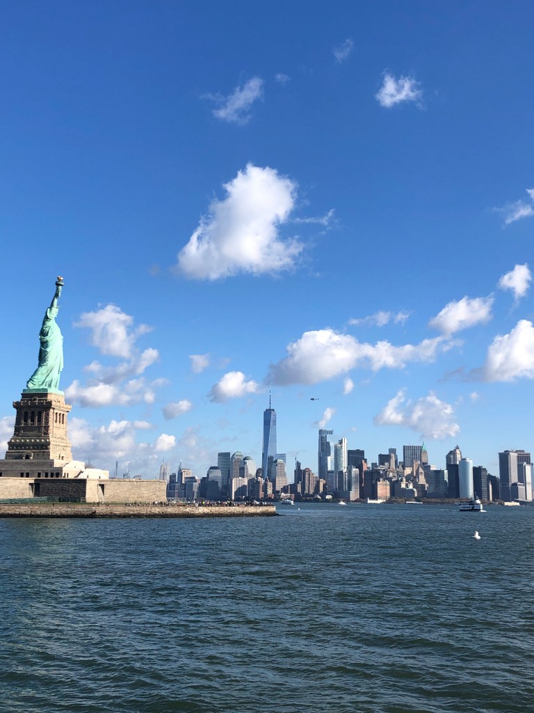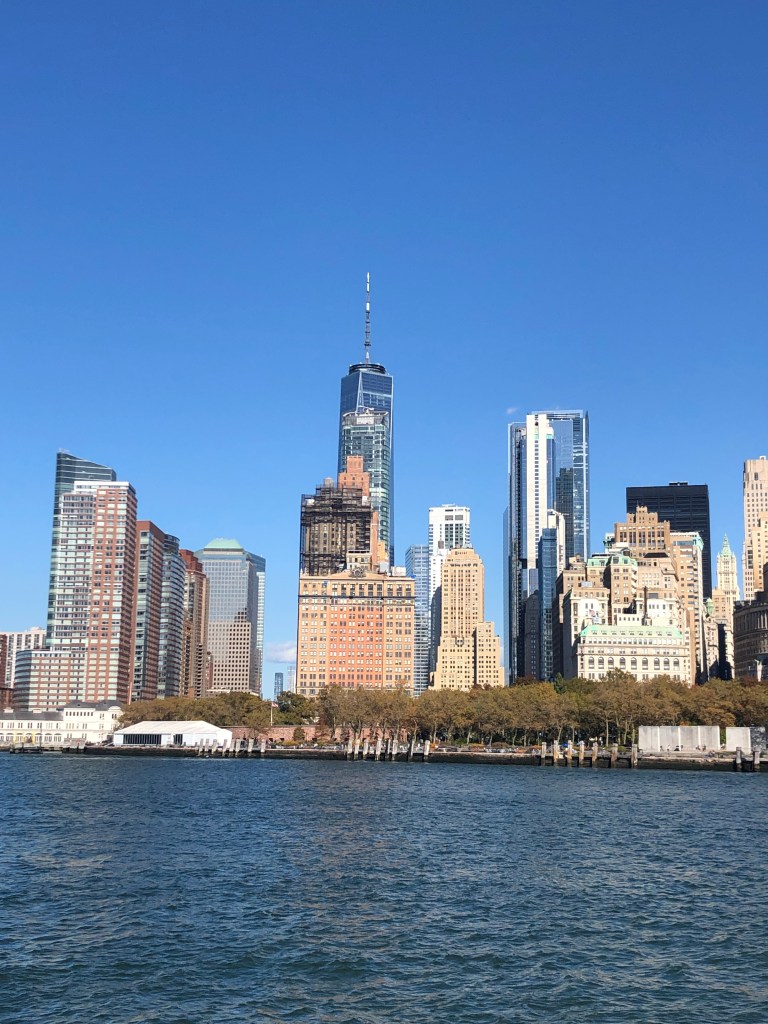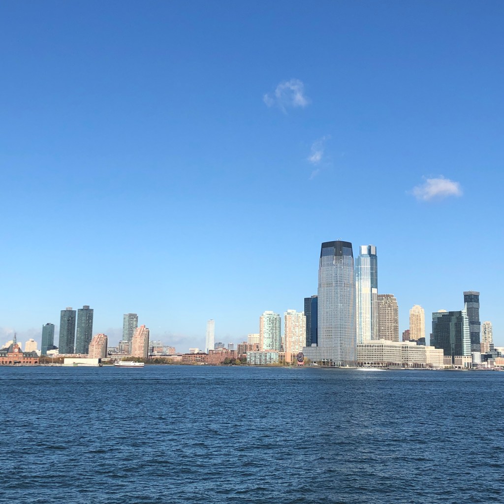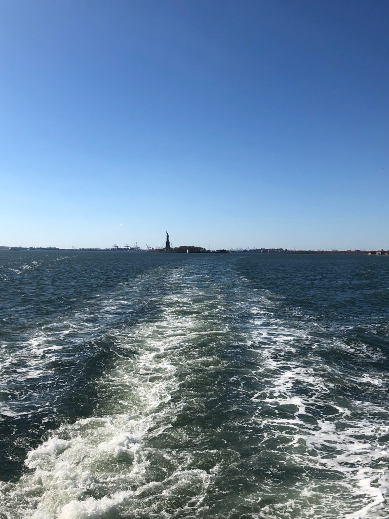 Après un bon petit-déjeuner, direction Battery Park pour le ferry qui nous transporte vers la Statue de la Liberté. La météo du jour est hallucinante, ciel bleu, grand soleil, 24 degrés… Pauvre planète…
