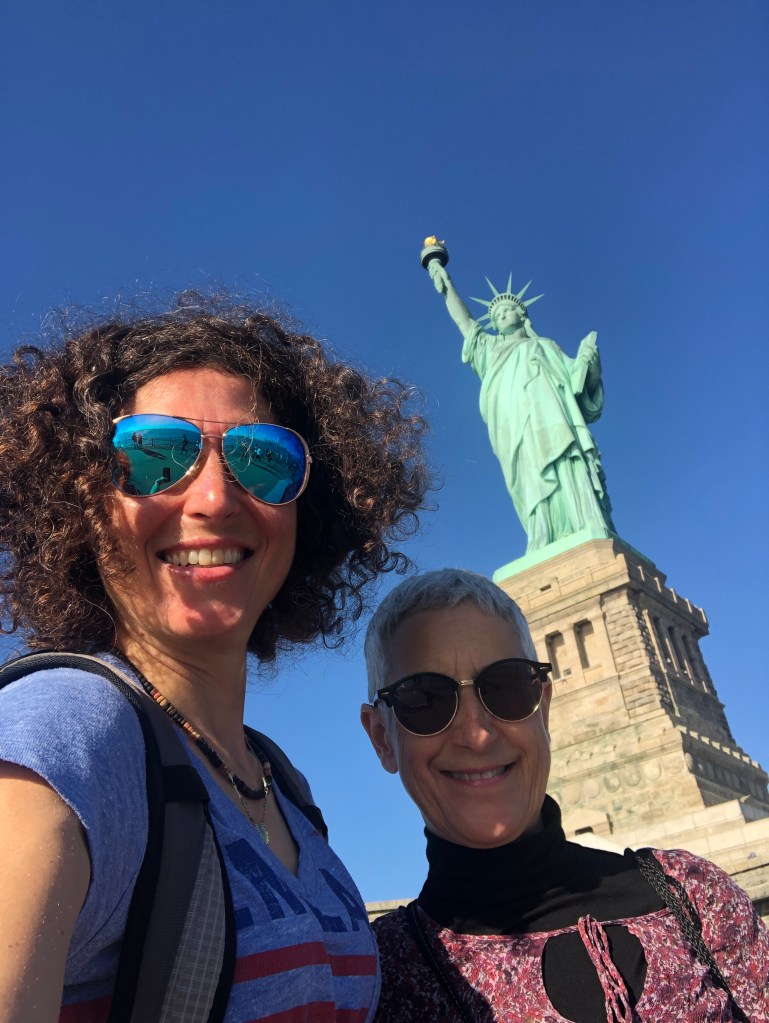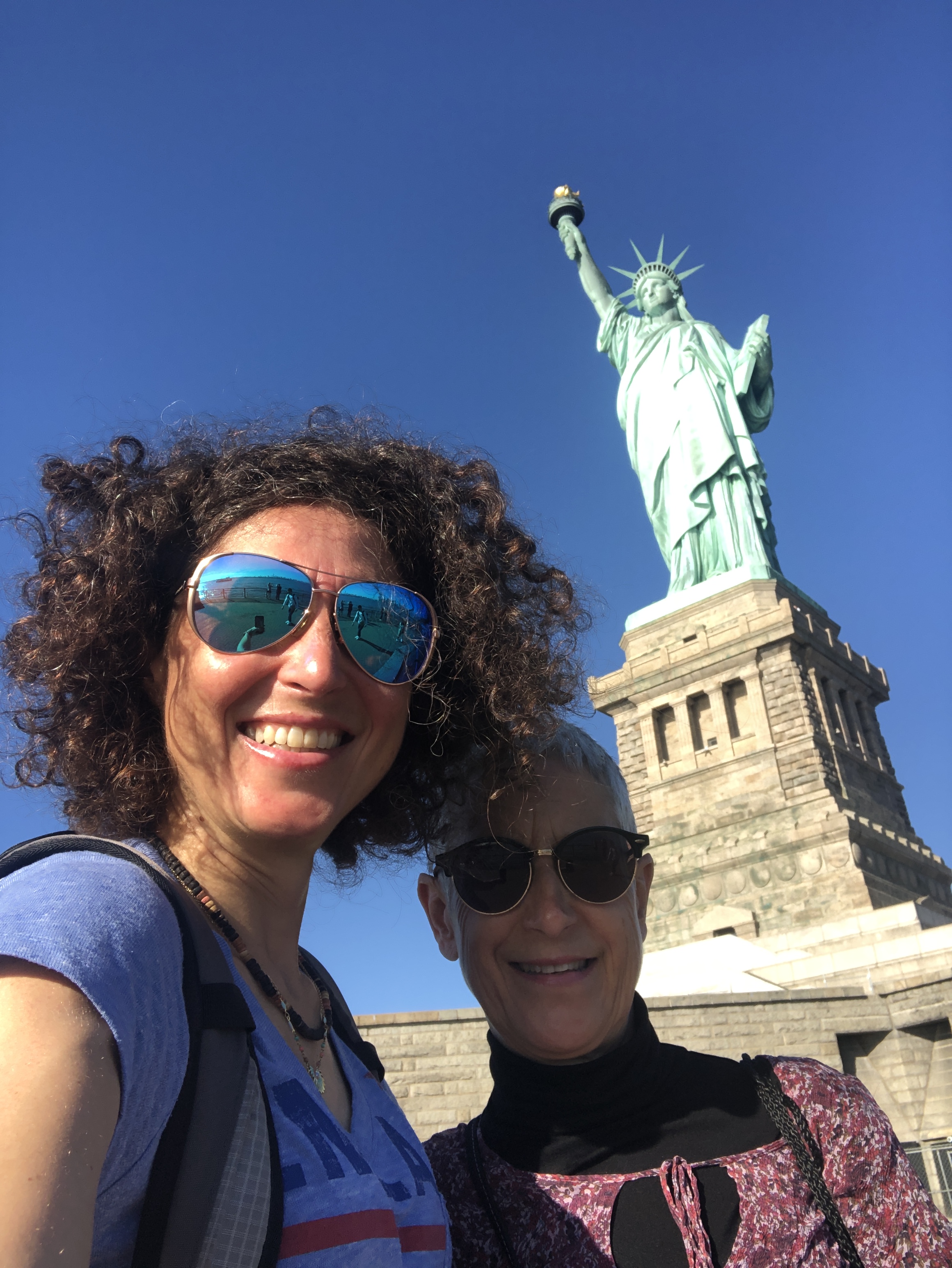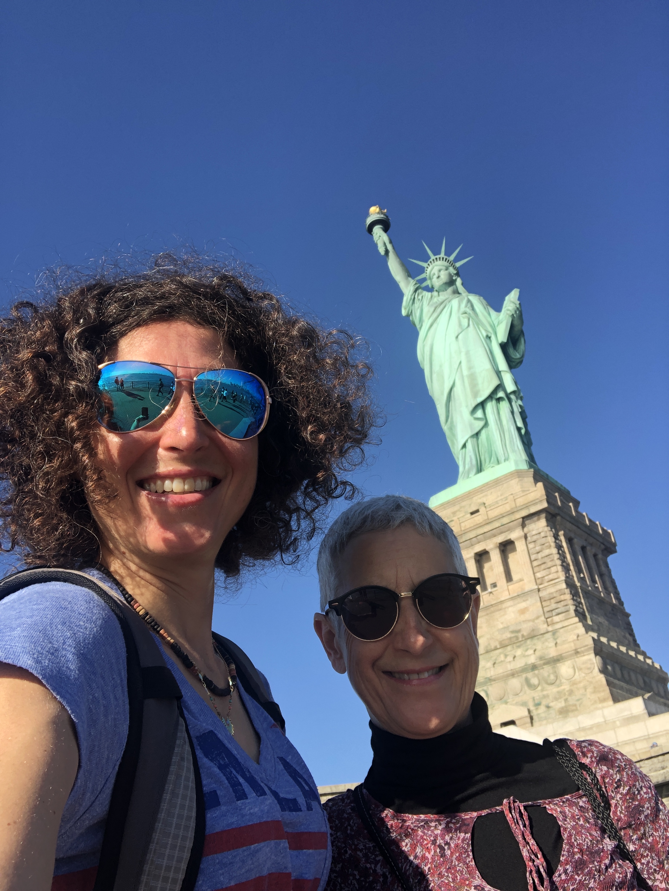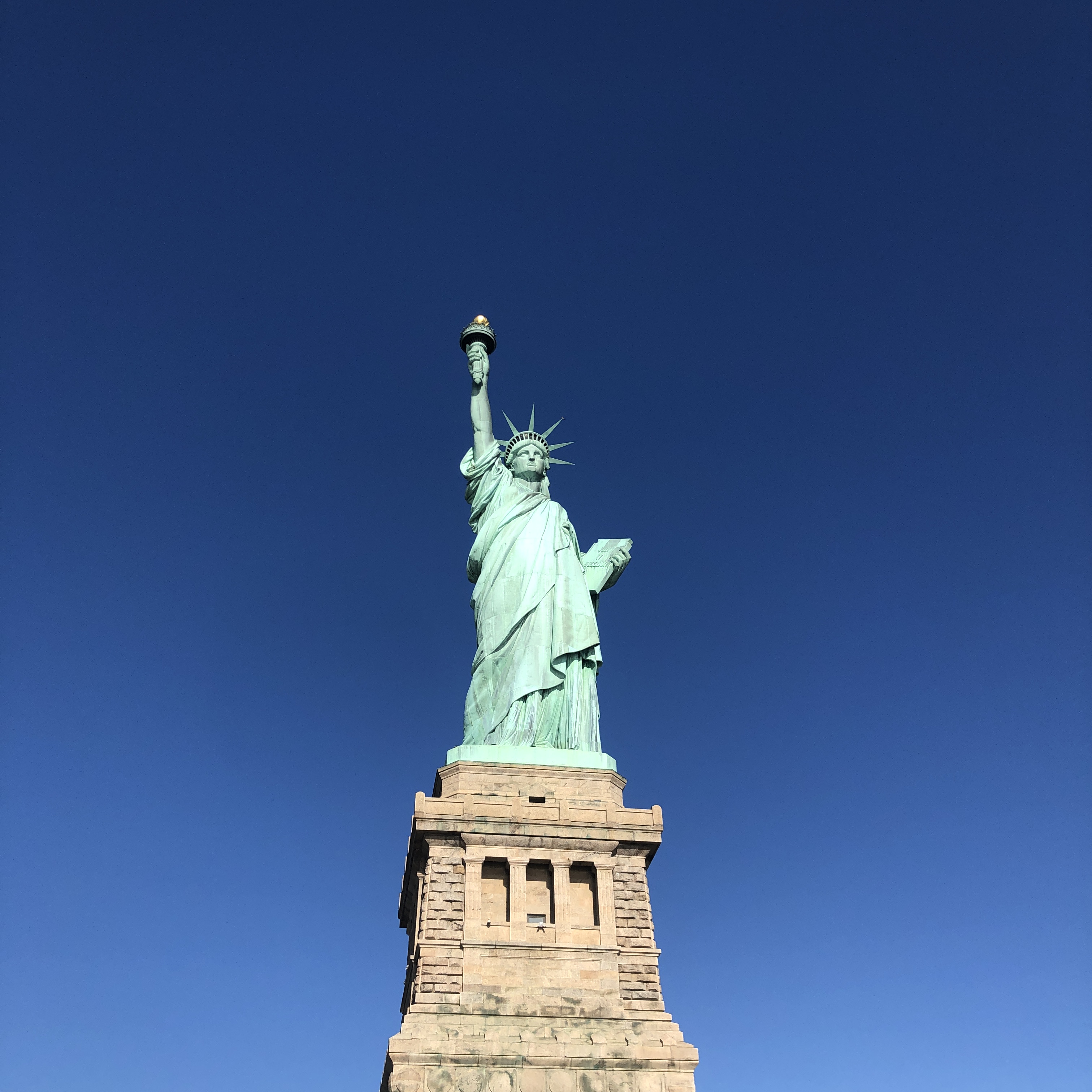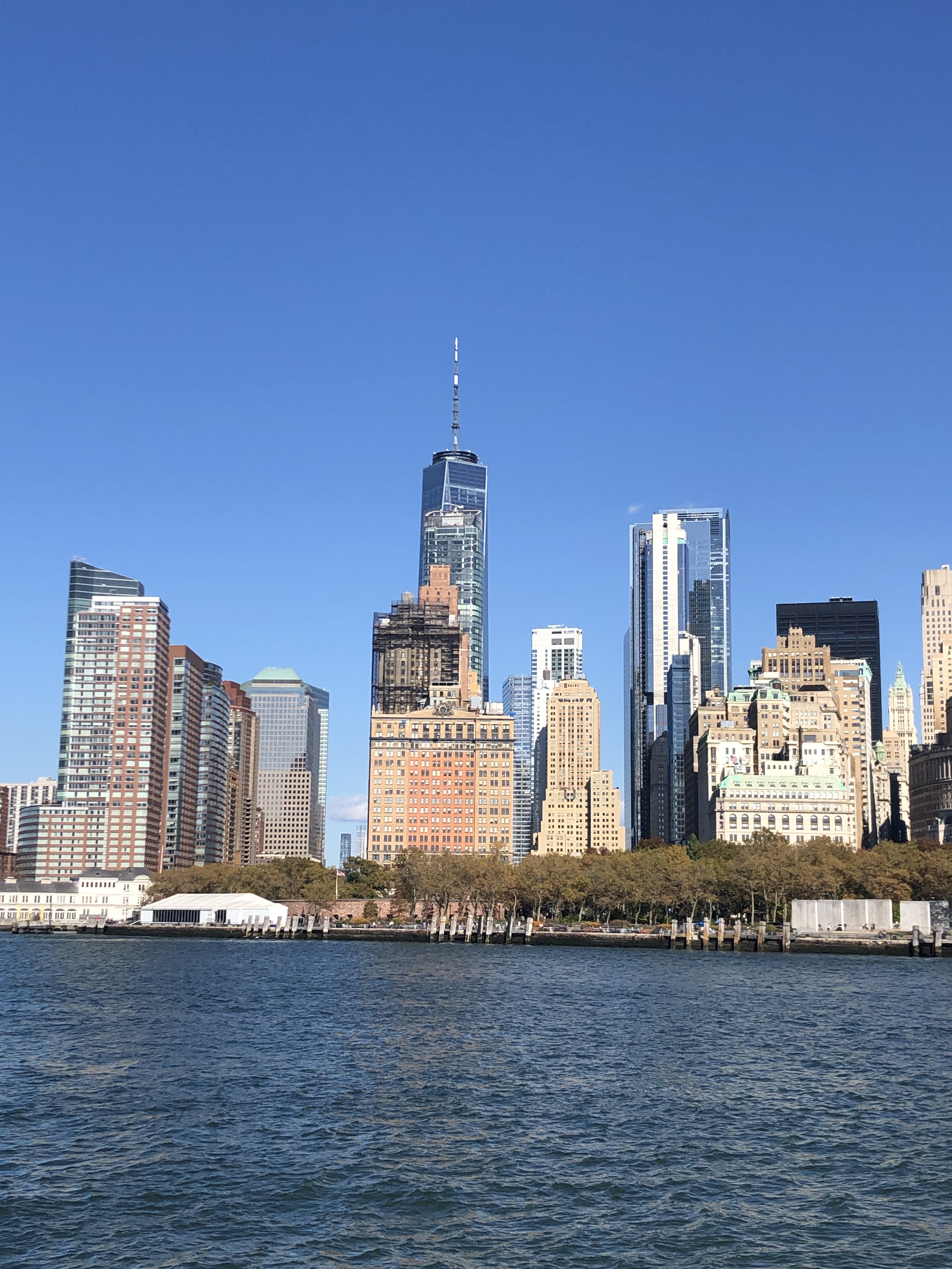Après un bon petit-déjeuner, direction Battery Park pour le ferry qui nous transporte vers la Statue de la Liberté. La météo du jour est hallucinante, ciel bleu, grand soleil, 24 degrés… Pauvre planète…