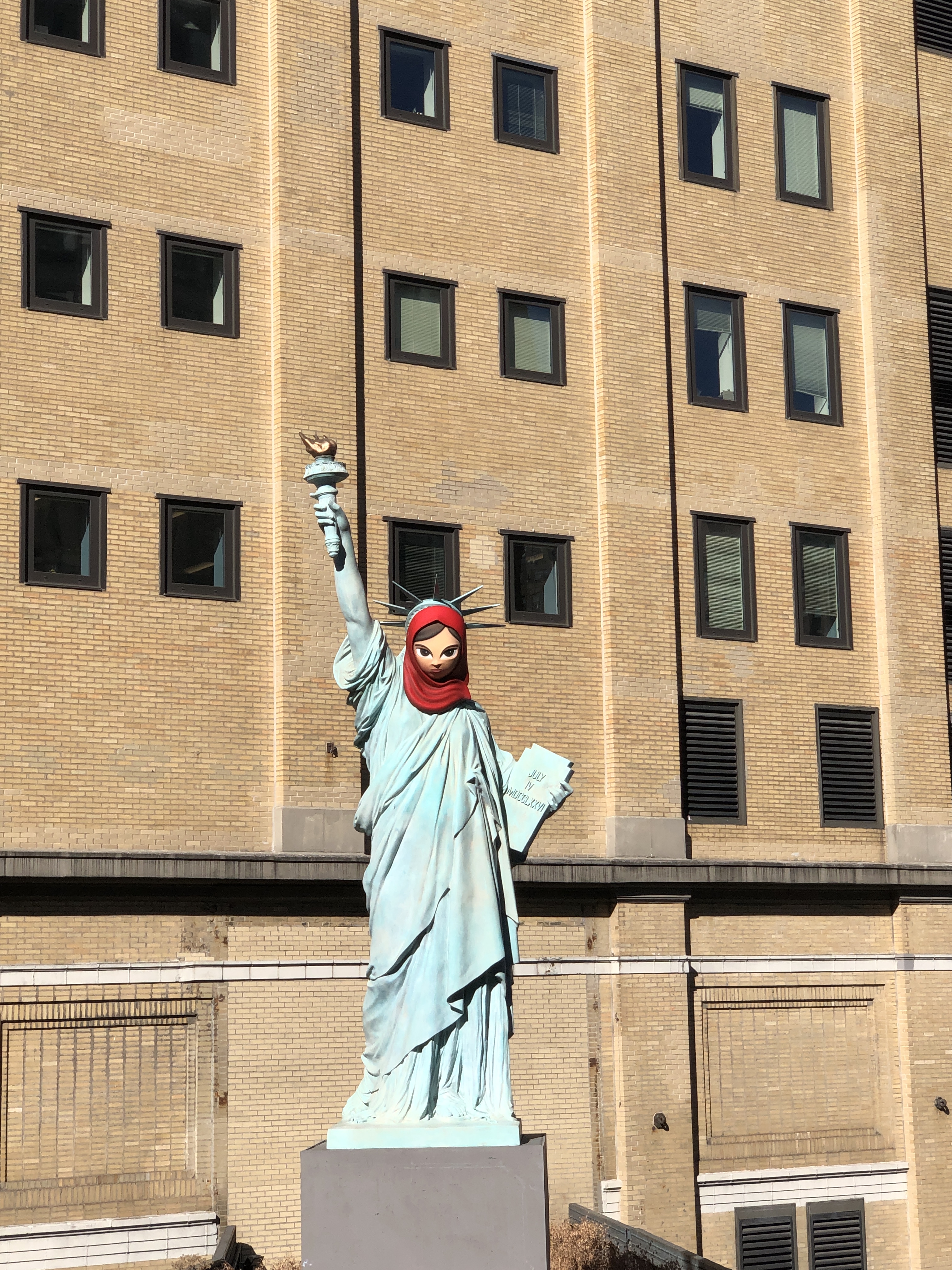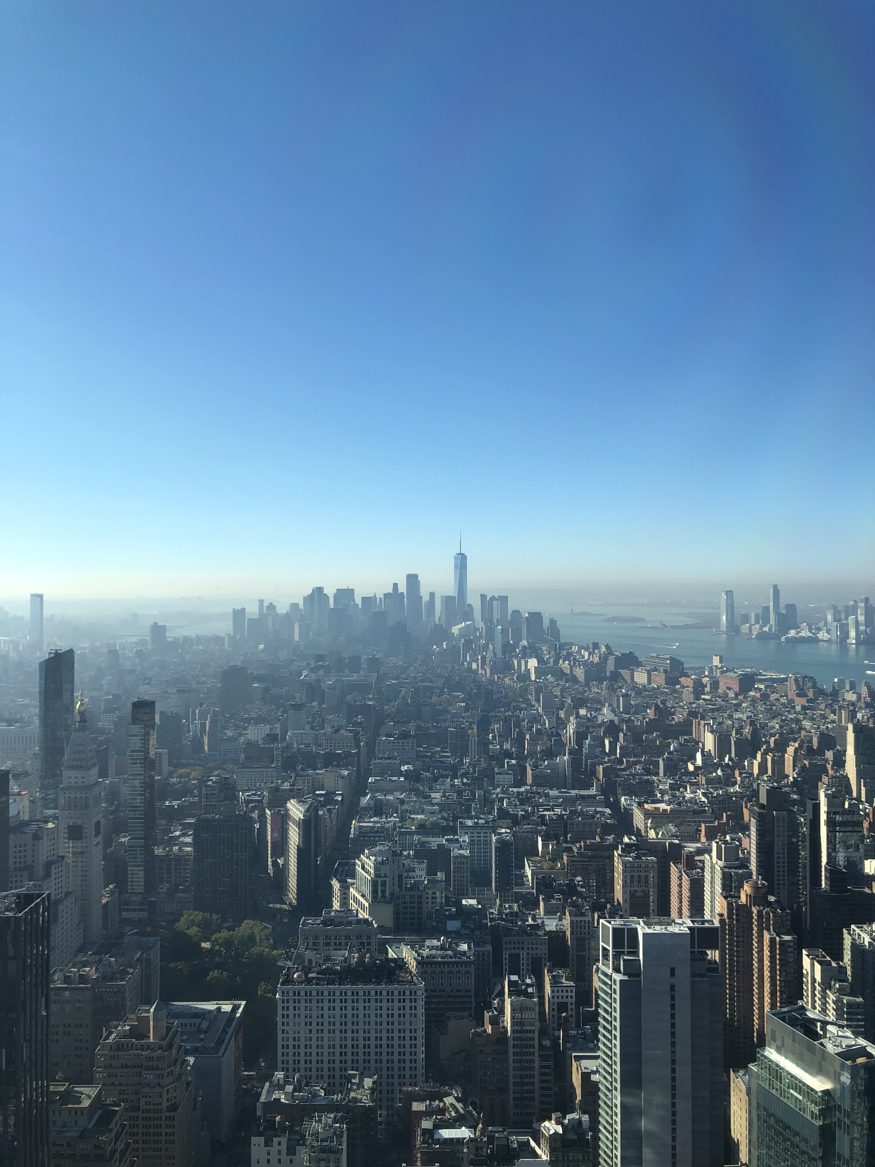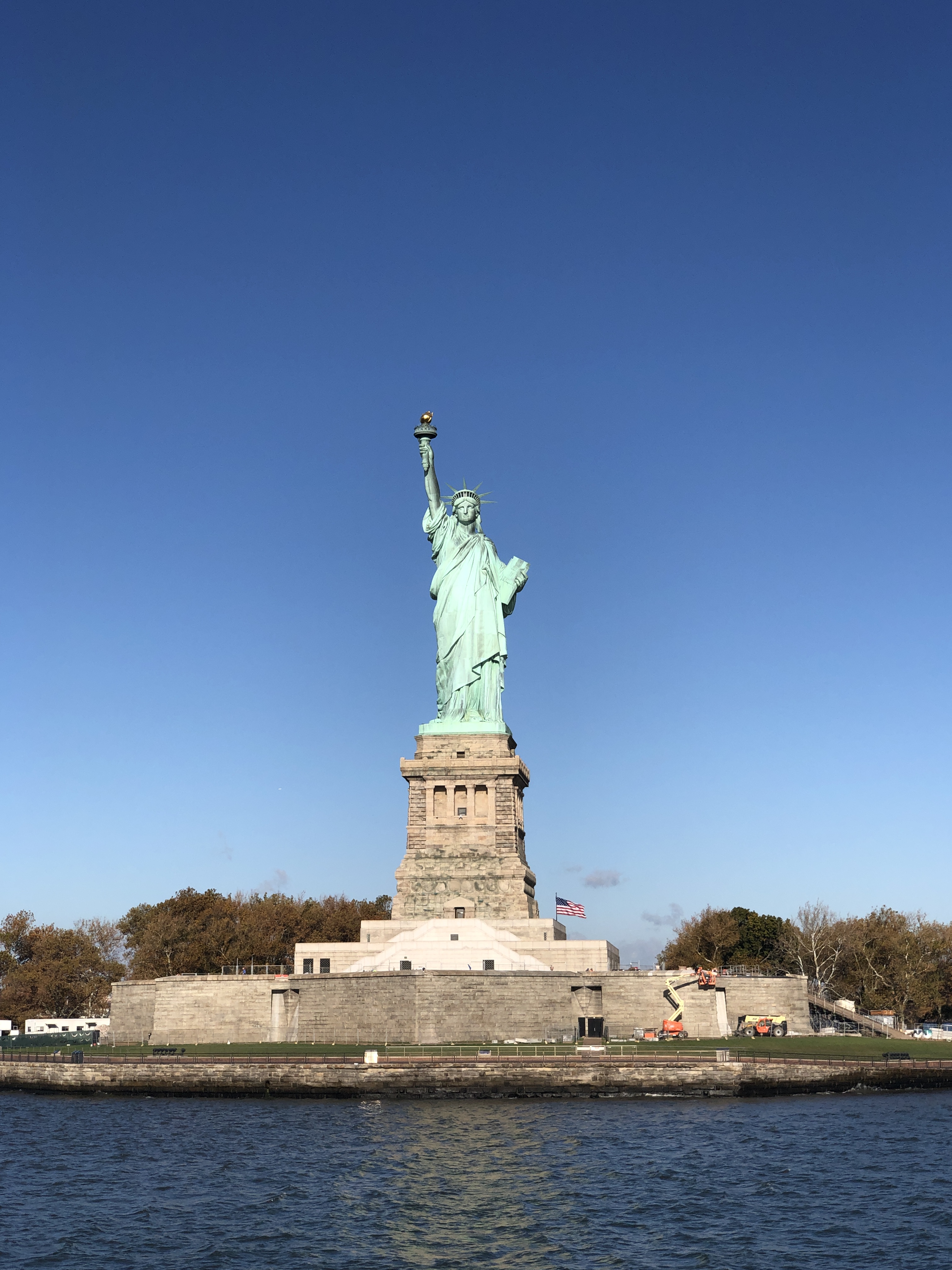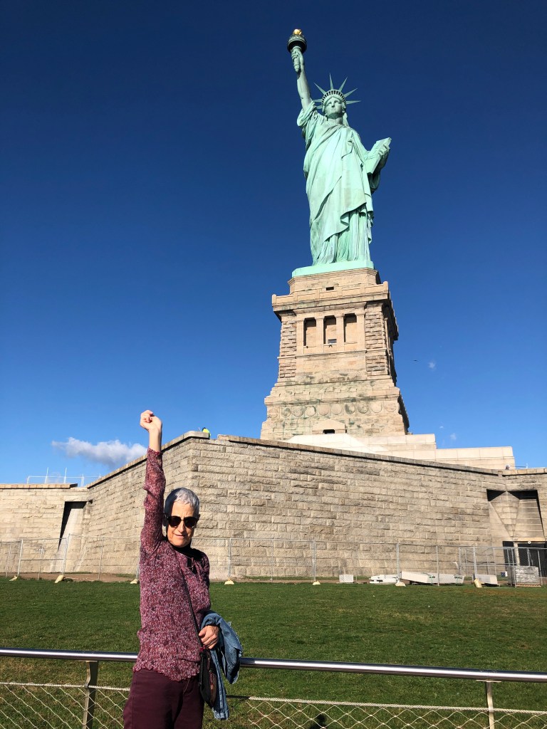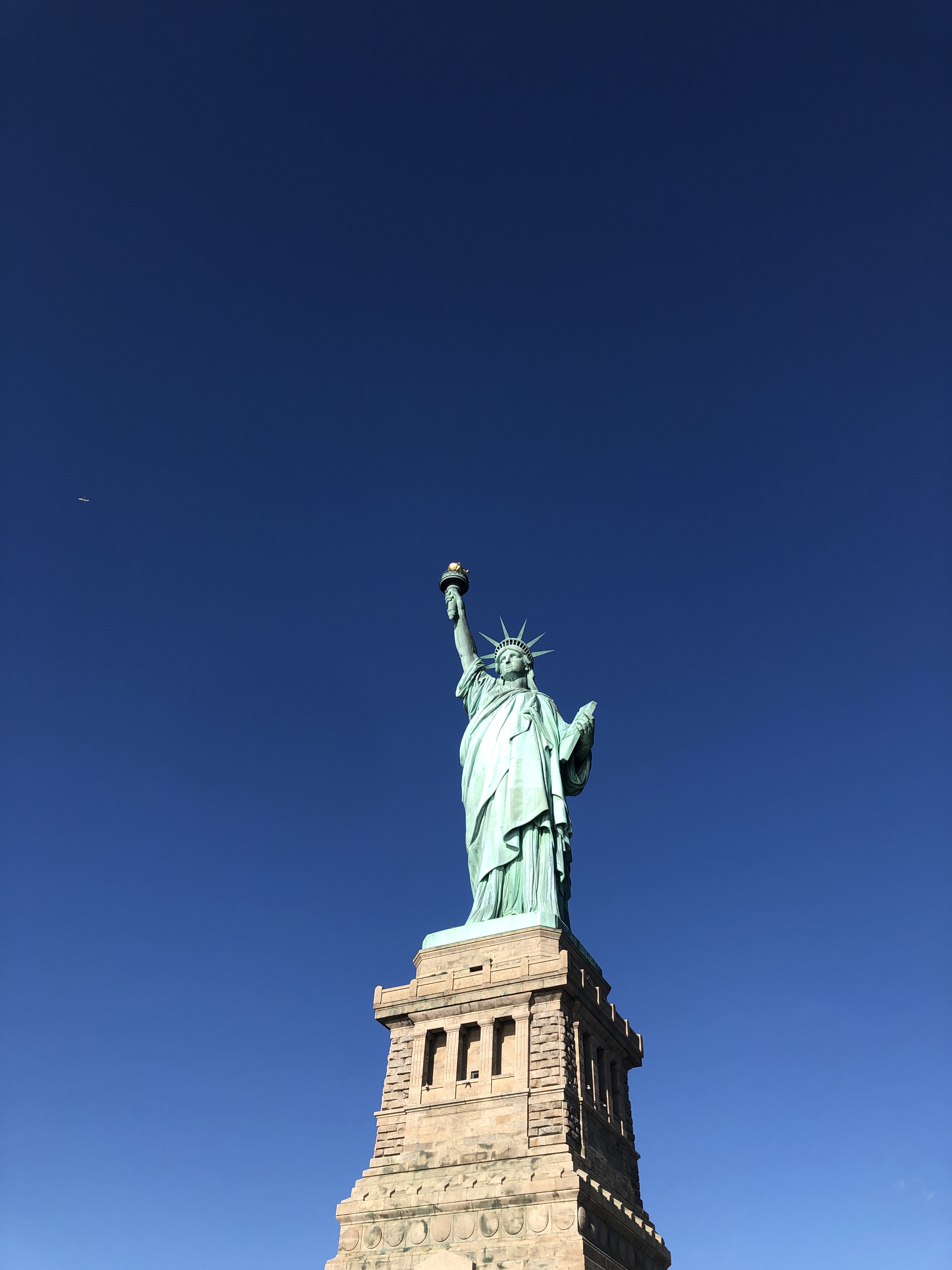 Après un bon petit-déjeuner, direction Battery Park pour le ferry qui nous transporte vers la Statue de la Liberté. La météo du jour est hallucinante, ciel bleu, grand soleil, 24 degrés… Pauvre planète…