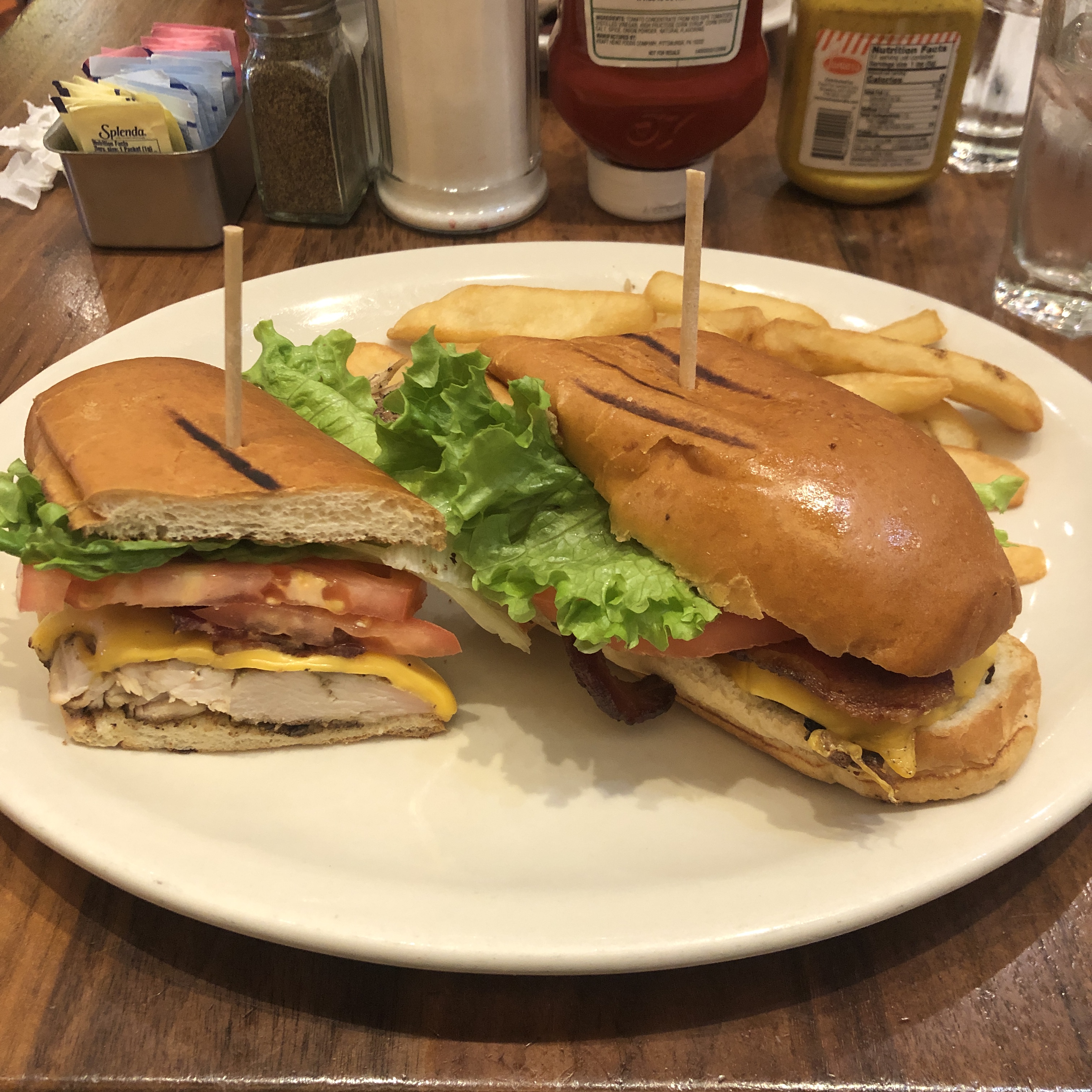 Nous nous partageons un Turkey & Pastrami sandwich et un Grilled Chicken Deluxe avant de fondre sur un Brownie Explosion cheesecake et un blueberry one 😋