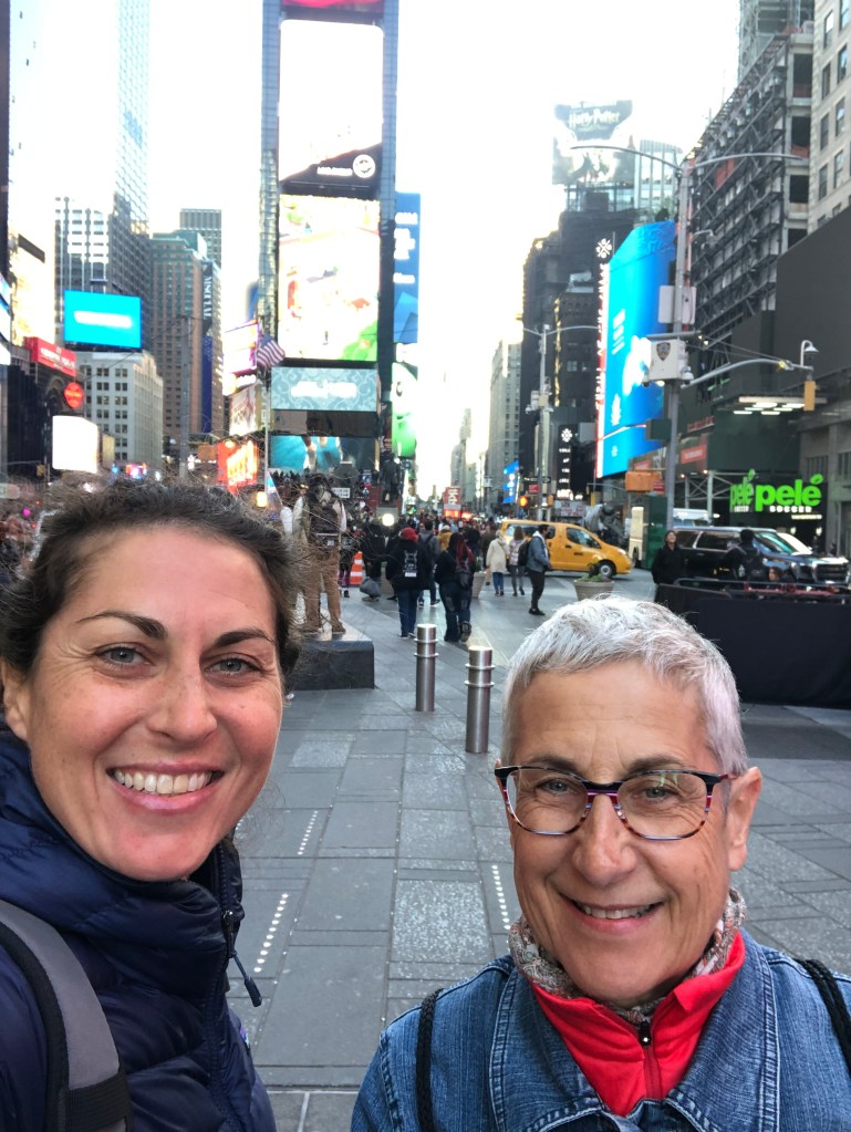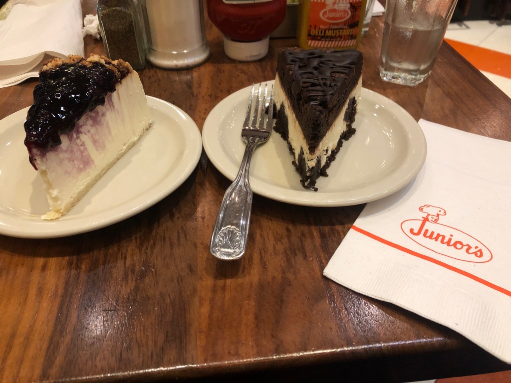 Pour le dîner, nous retournons dans le tourbillon de Times Square. J’ai envie de faire vivre à maman l’expérience Junior’s.
