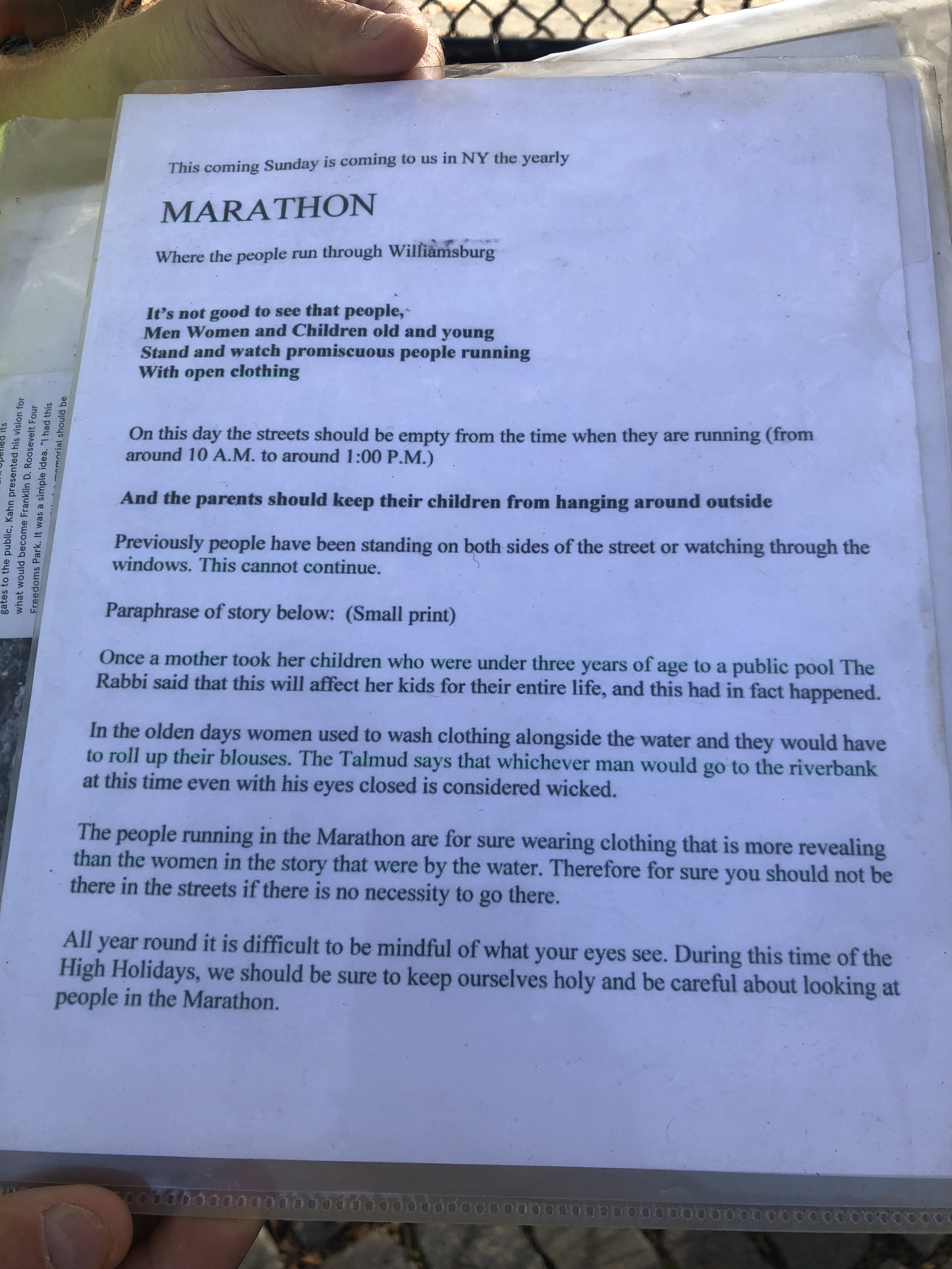 Et la traversée de Williamsburg est toujours aussi impressionnante. Surtout un vendredi, en plein après-midi, quand ils se préparent pour le Sabbath. Ils ont même préparé des affiches mettant en garde contre le passage du marathon dimanche…