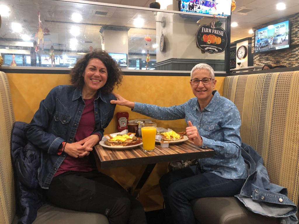 Des étirements, une bonne douche – on marche presque nickel même s’il reste encore un peu douloureux de redémarrer après une pause assise – et c’est direction Andrew’s NYC Diner, à 6 blocs de l’hôtel, pour un délicieux petit-déjeuner à l’américaine : oeufs, bacon, saucisses et pancakes !