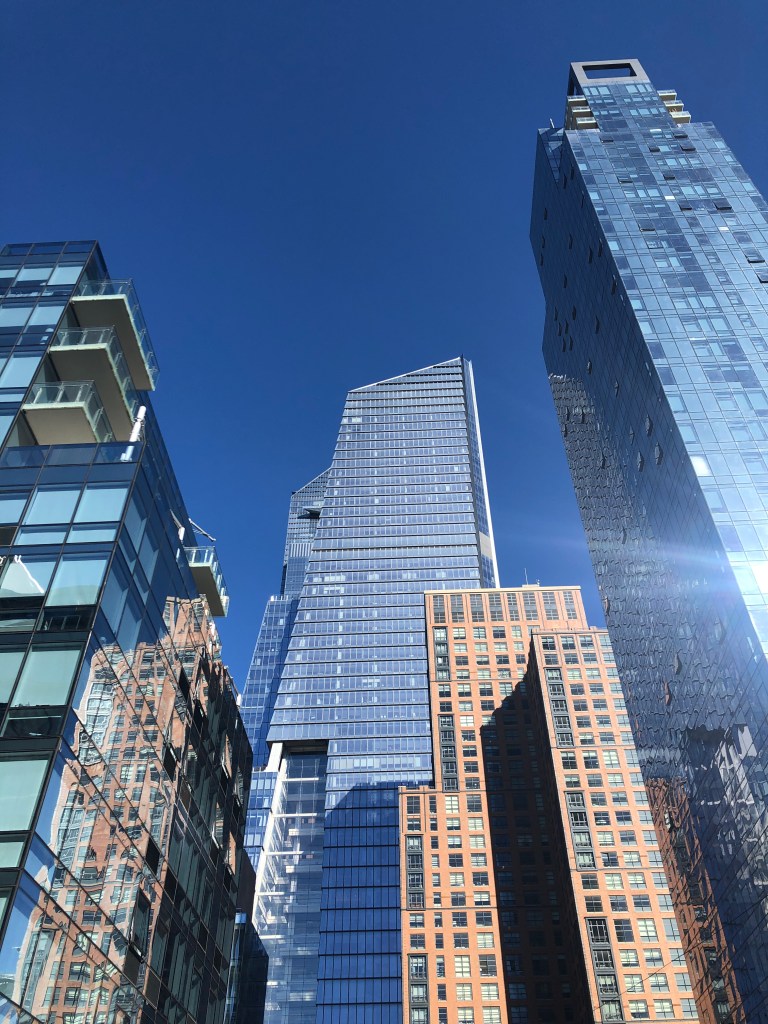 Au niveau de la 32 St nous prenons encore plus de hauteur en visitant The Edge, au cœur du quartier expérimental Hudson Yards – notre troisième excursion avec l’Empire State Building et la Statue de la liberté comprise dans notre C3 New York City Pass. La vue est très chouette et le spot est parfait pour immortaliser la médaille. Et oui, à New York, on porte la médaille jusqu’au départ. C’est une tradition qui peut donner lieu à des entrées gratuites au musée, à un verre offert dans un bar… Nous, cela nous a permis de décrocher une table au restaurant hier soir alors que nous n’avions pas de réservation.