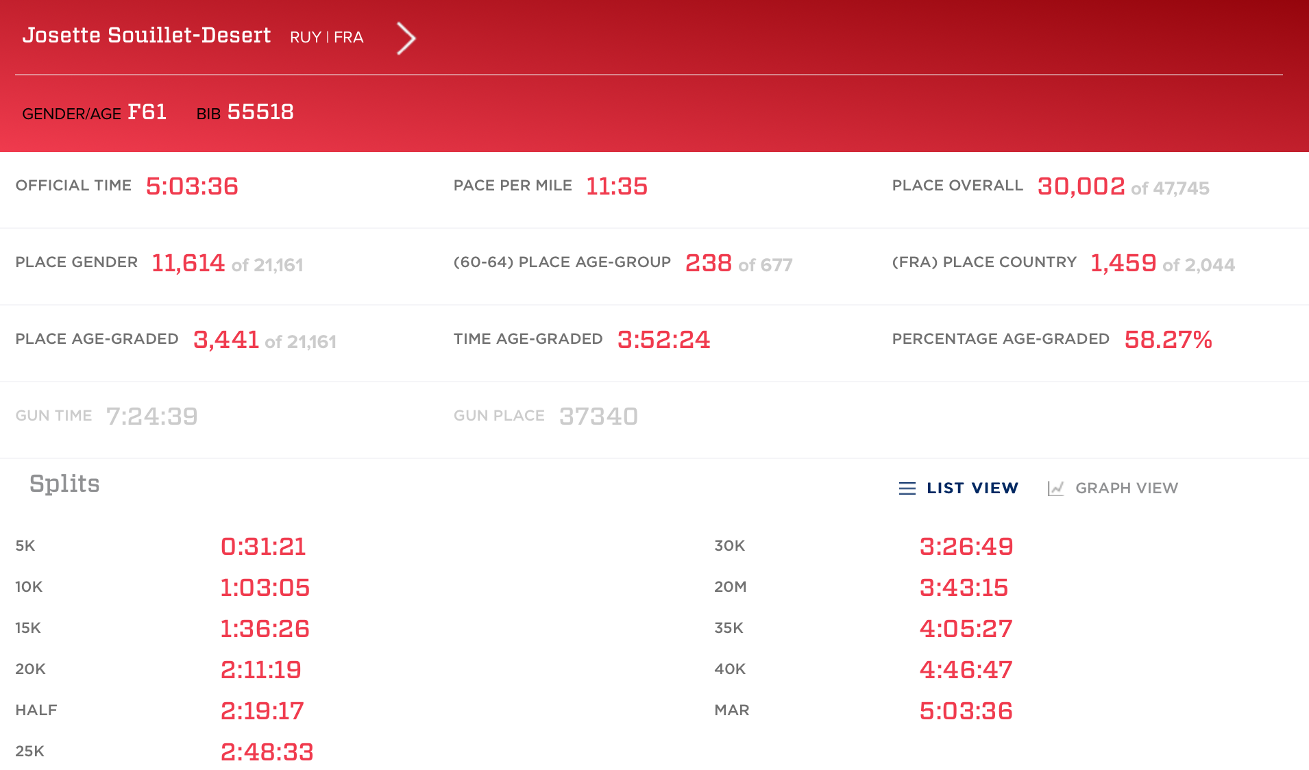 Je la suis en direct sur l’application et elle progresse à son rythme, tout en régularité. Je me rends compte que pour son premier marathon, je ne lui ai pas fait un cadeau en l’invitant sur ce parcours ultra casse-pattes. Mais elle a bien géré et entre dans la famille des marathoniens avec un chrono de 5h03’36.