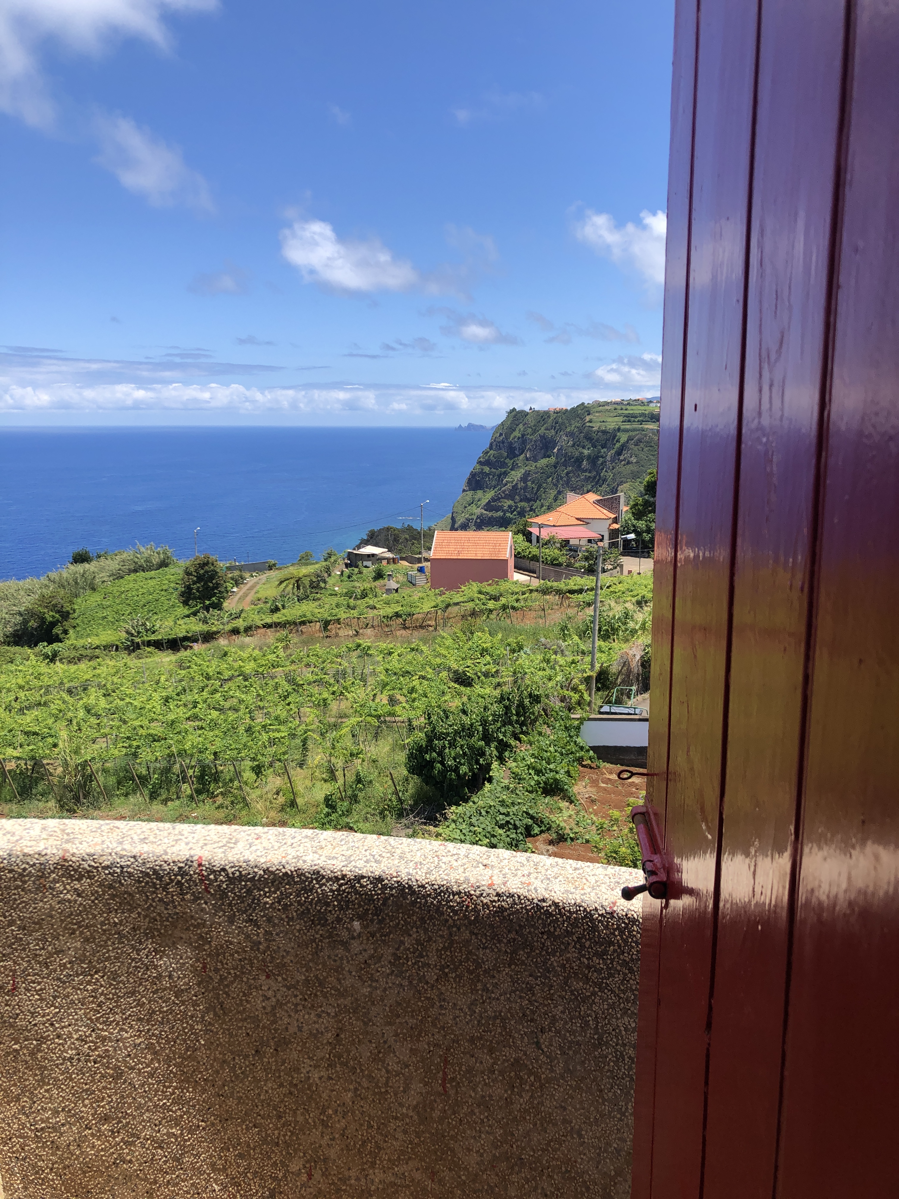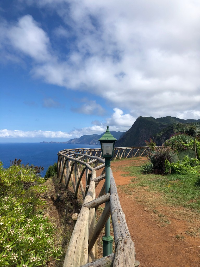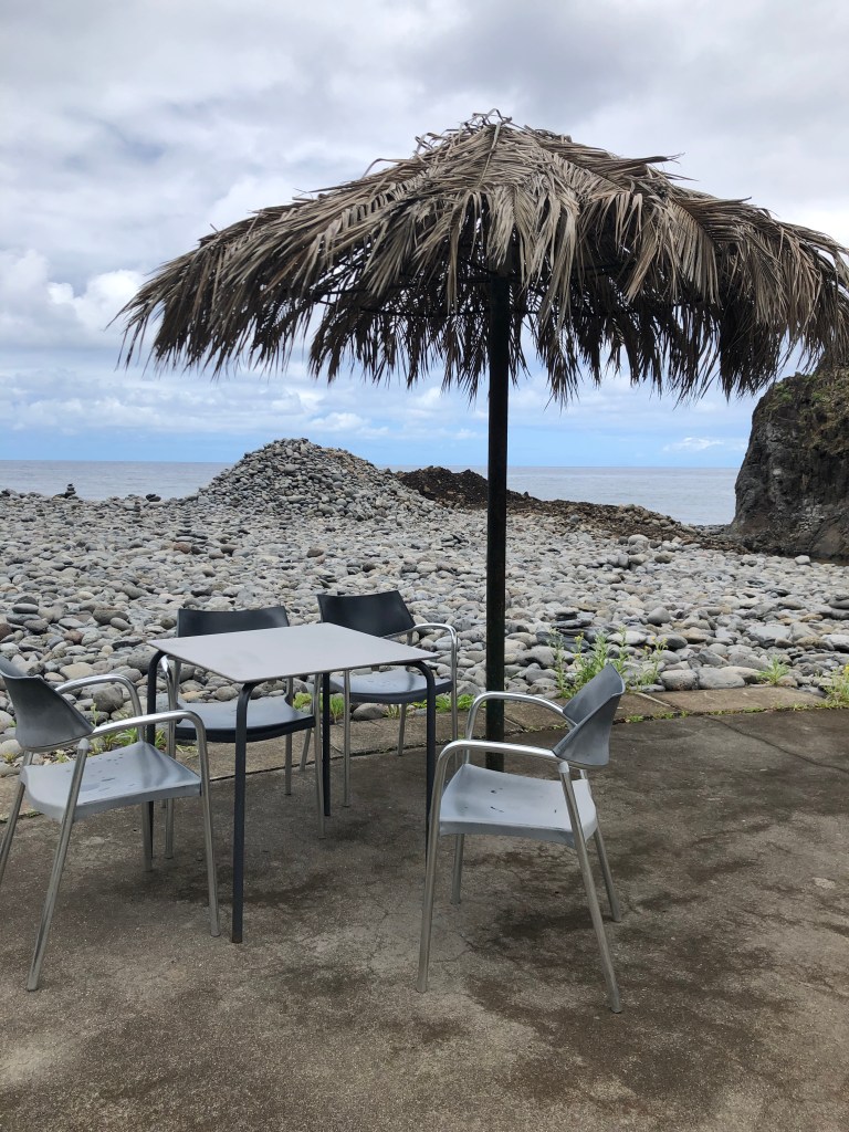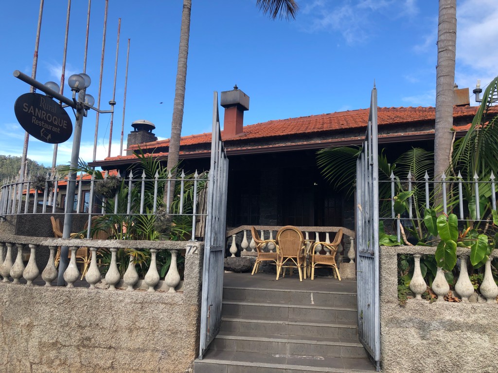 Après un apéro au seul troquet du coin, la Quinta Levada do Rei, nous poursuivons notre chemin vers Cabo Aéreo Café dans le village de Sao Jorge où nous nous installons pour déjeuner. En chemin, nous avons enfin pu apercevoir au large l’Ile de Porto Santo !