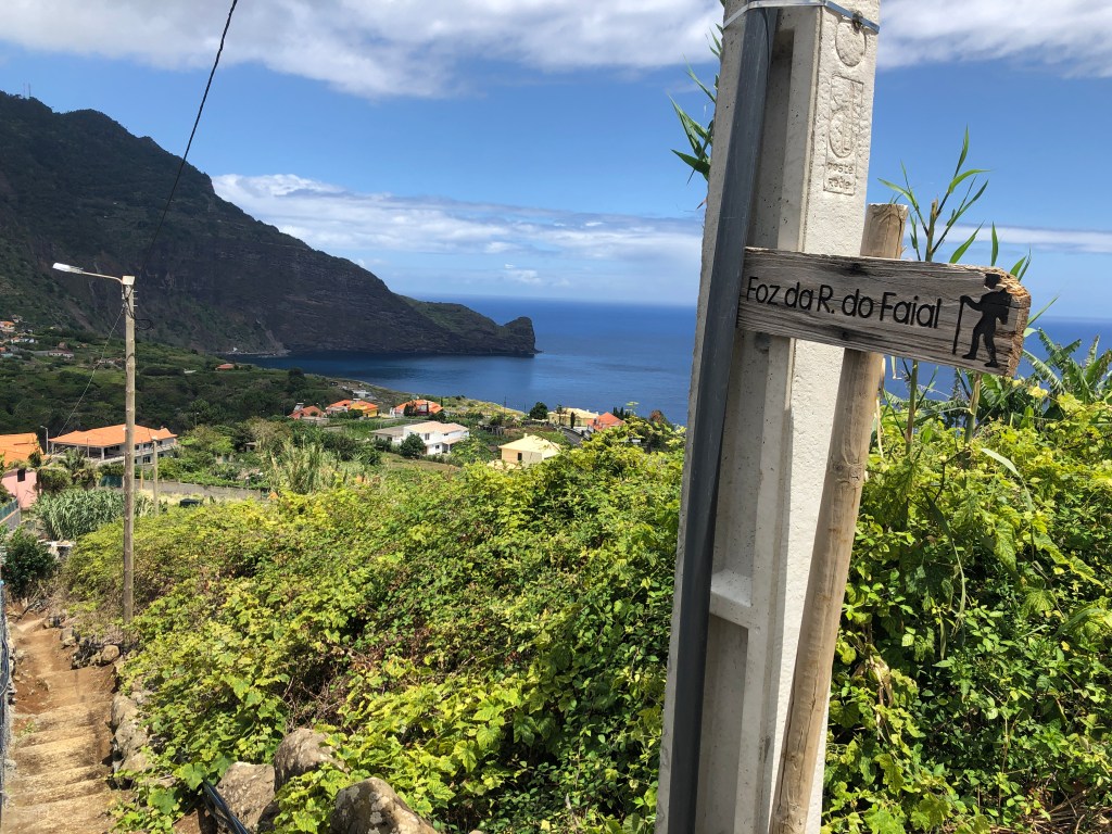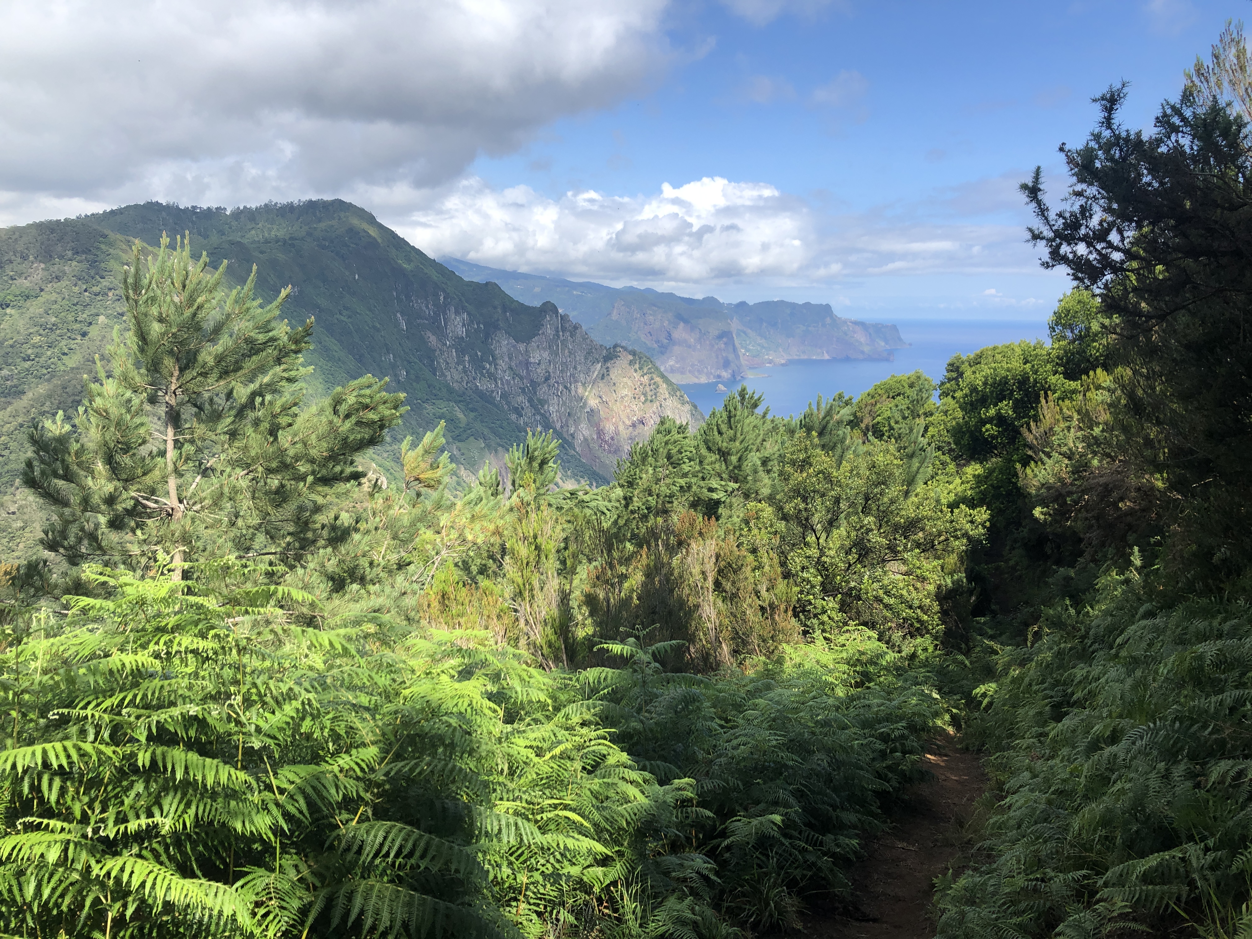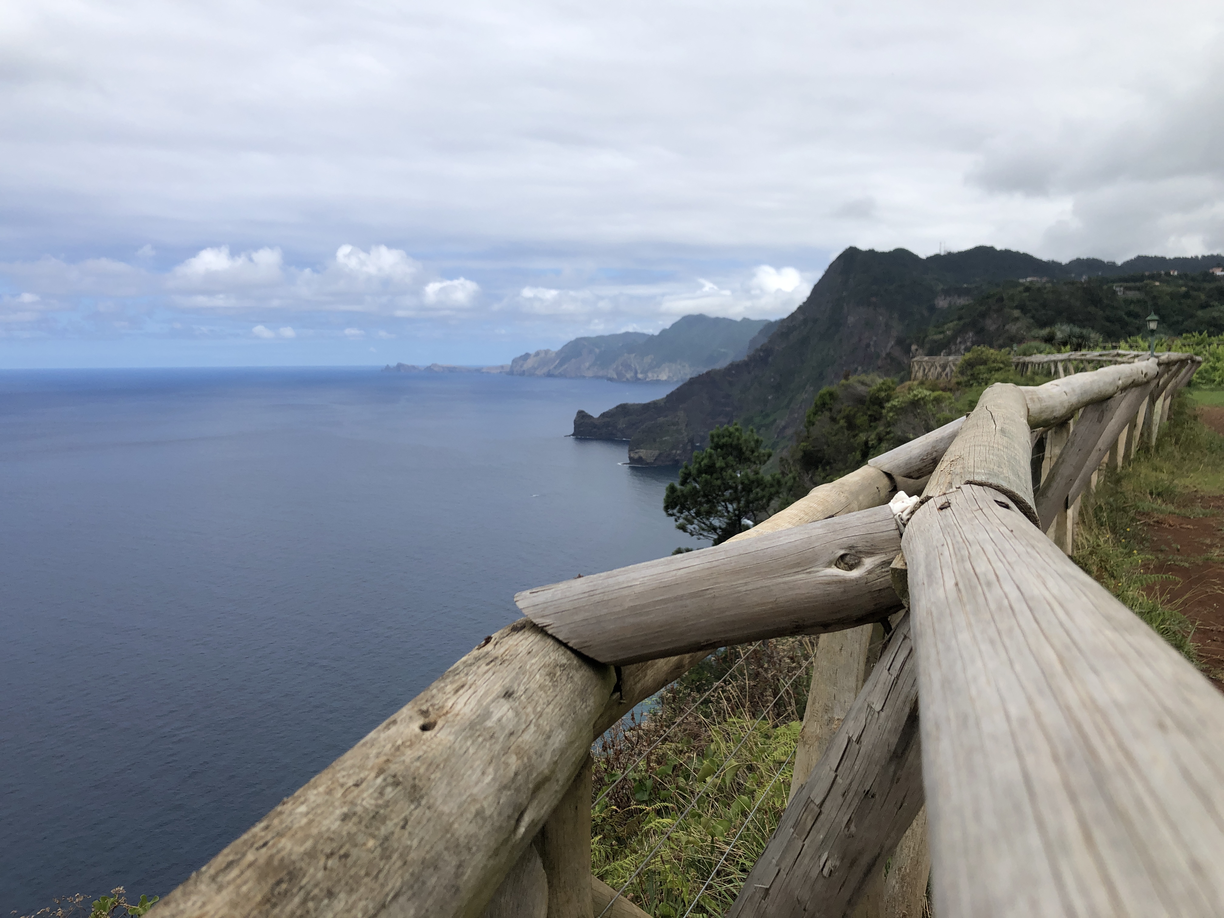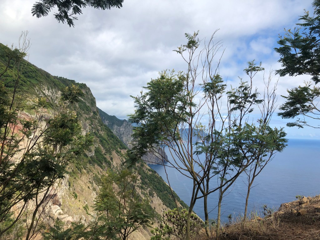 Le sentier serpente au milieu des cultures en terrasse. Nous arrivons sur la côte sauvage de Boca do Risco. Entre pinèdes et eucalyptus, le chemin côtier se poursuit, offrant des vues sur les falaises escarpées de la côte nord.