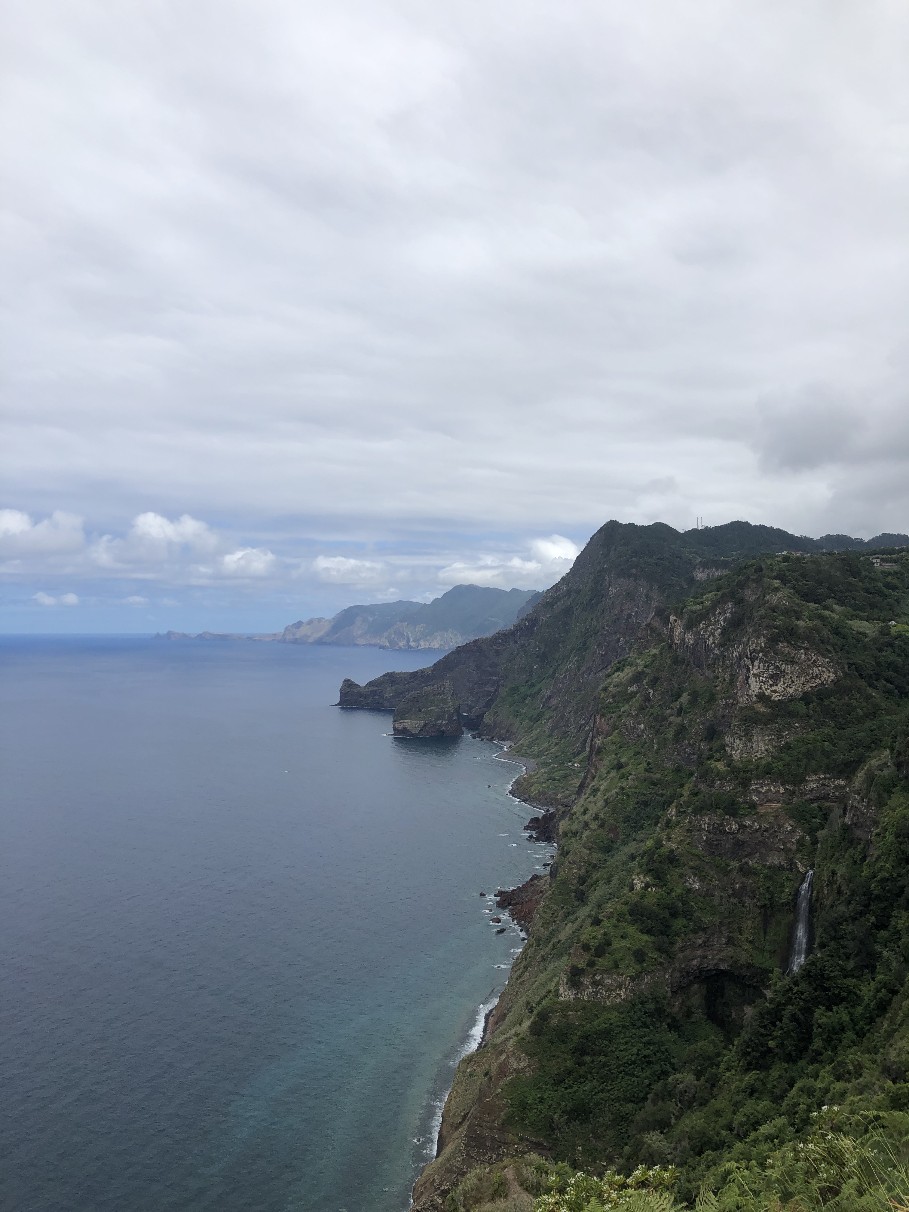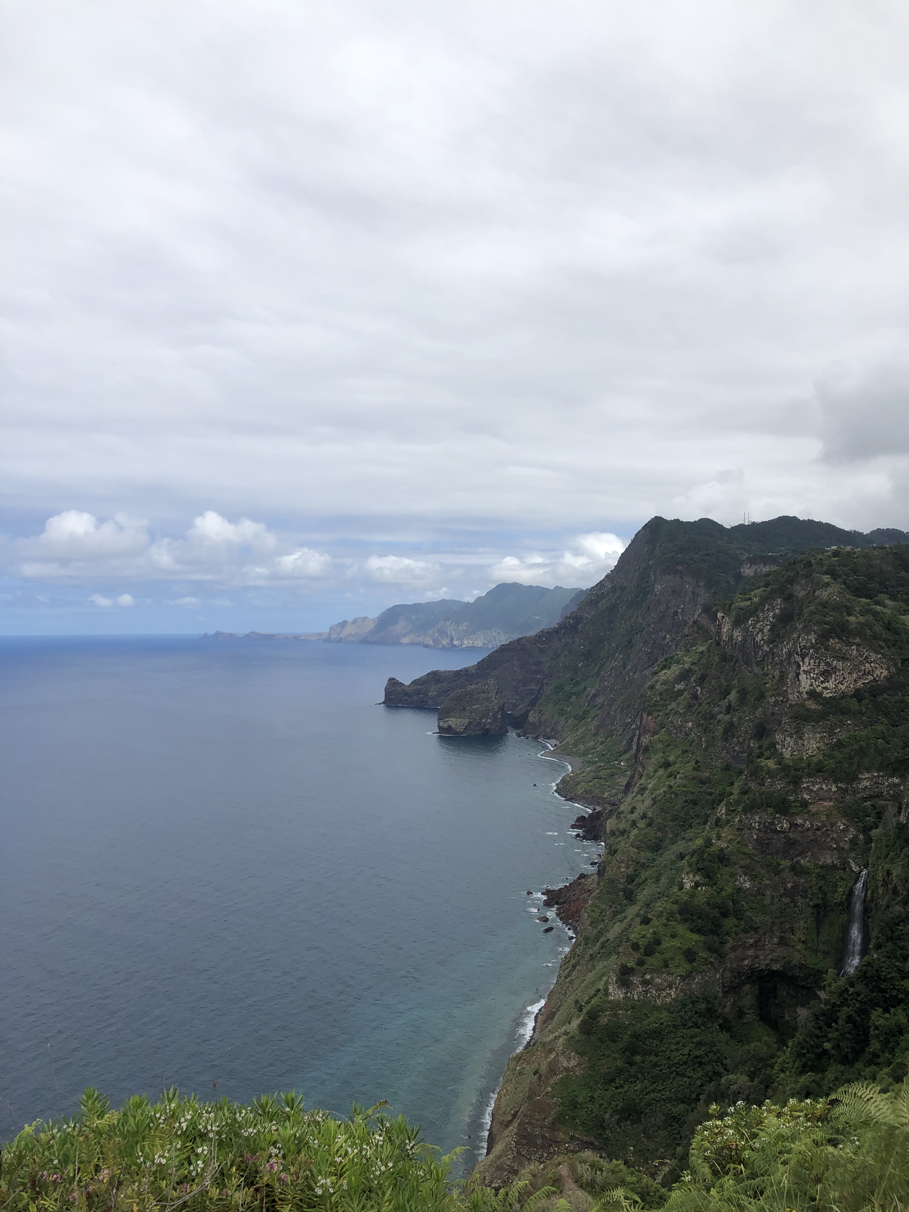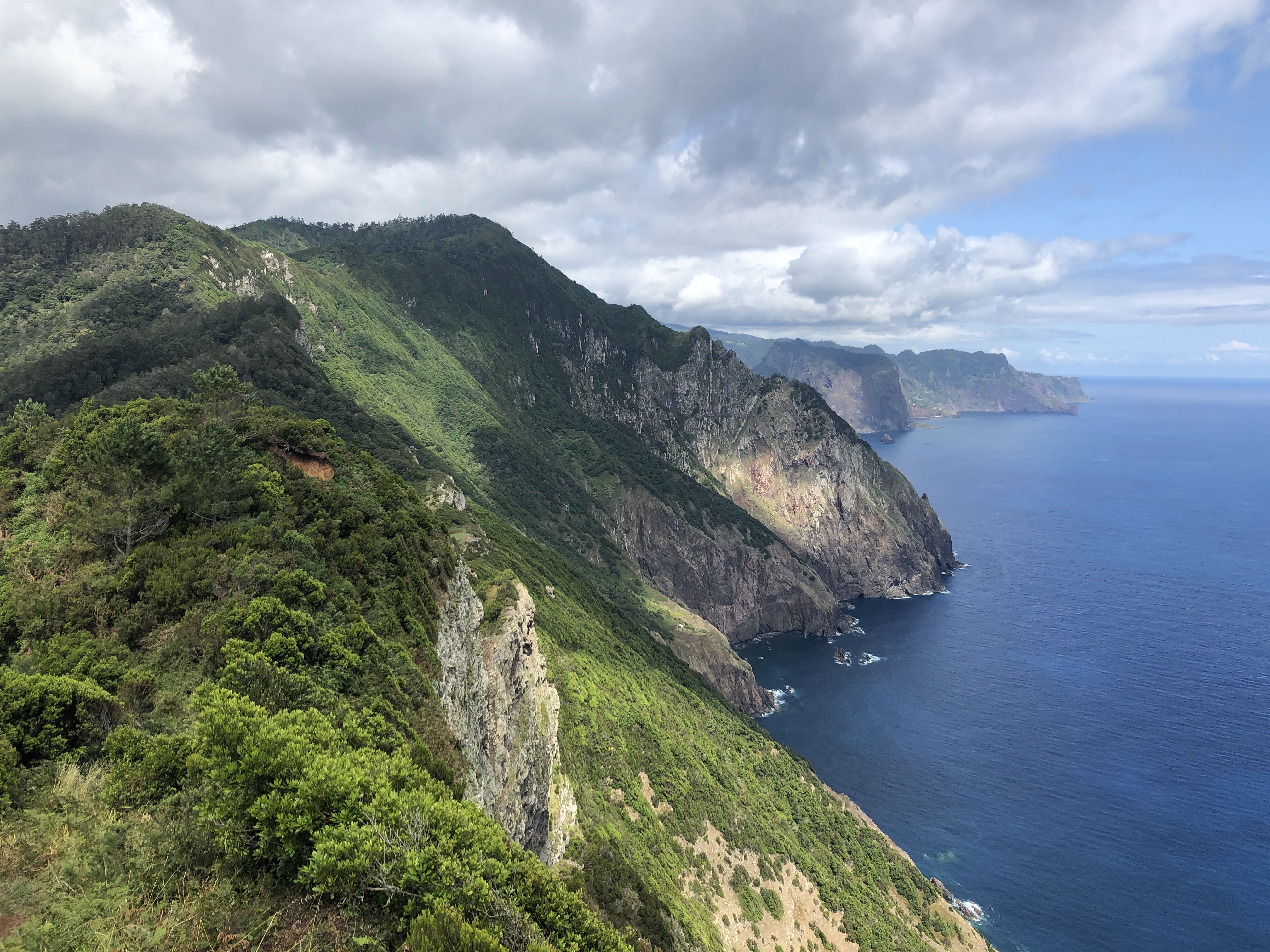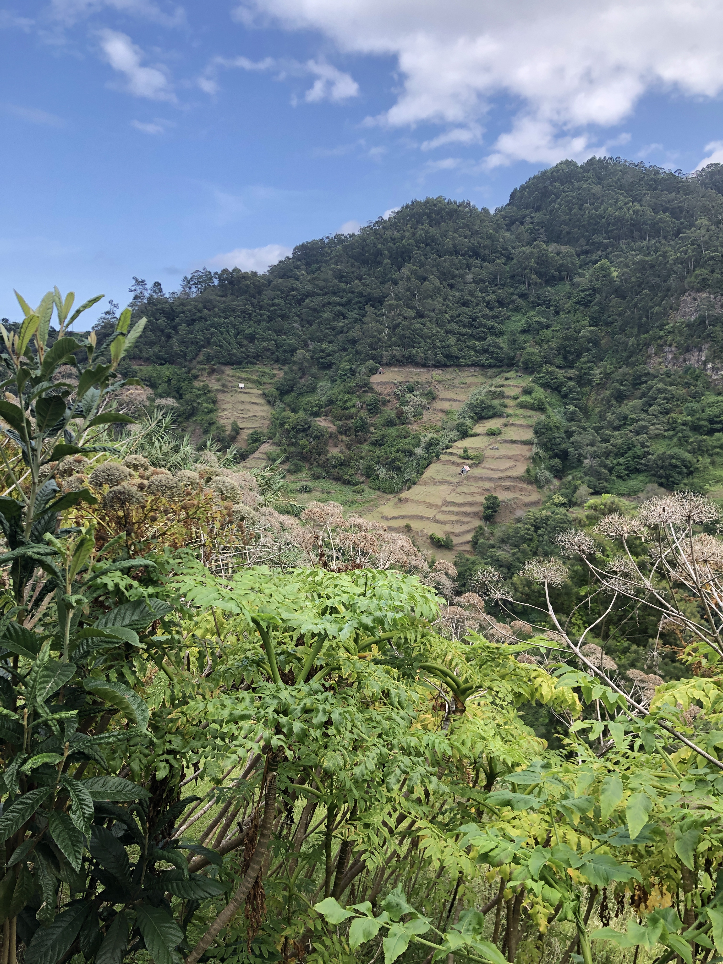 Le sentier serpente au milieu des cultures en terrasse. Nous arrivons sur la côte sauvage de Boca do Risco. Entre pinèdes et eucalyptus, le chemin côtier se poursuit, offrant des vues sur les falaises escarpées de la côte nord.