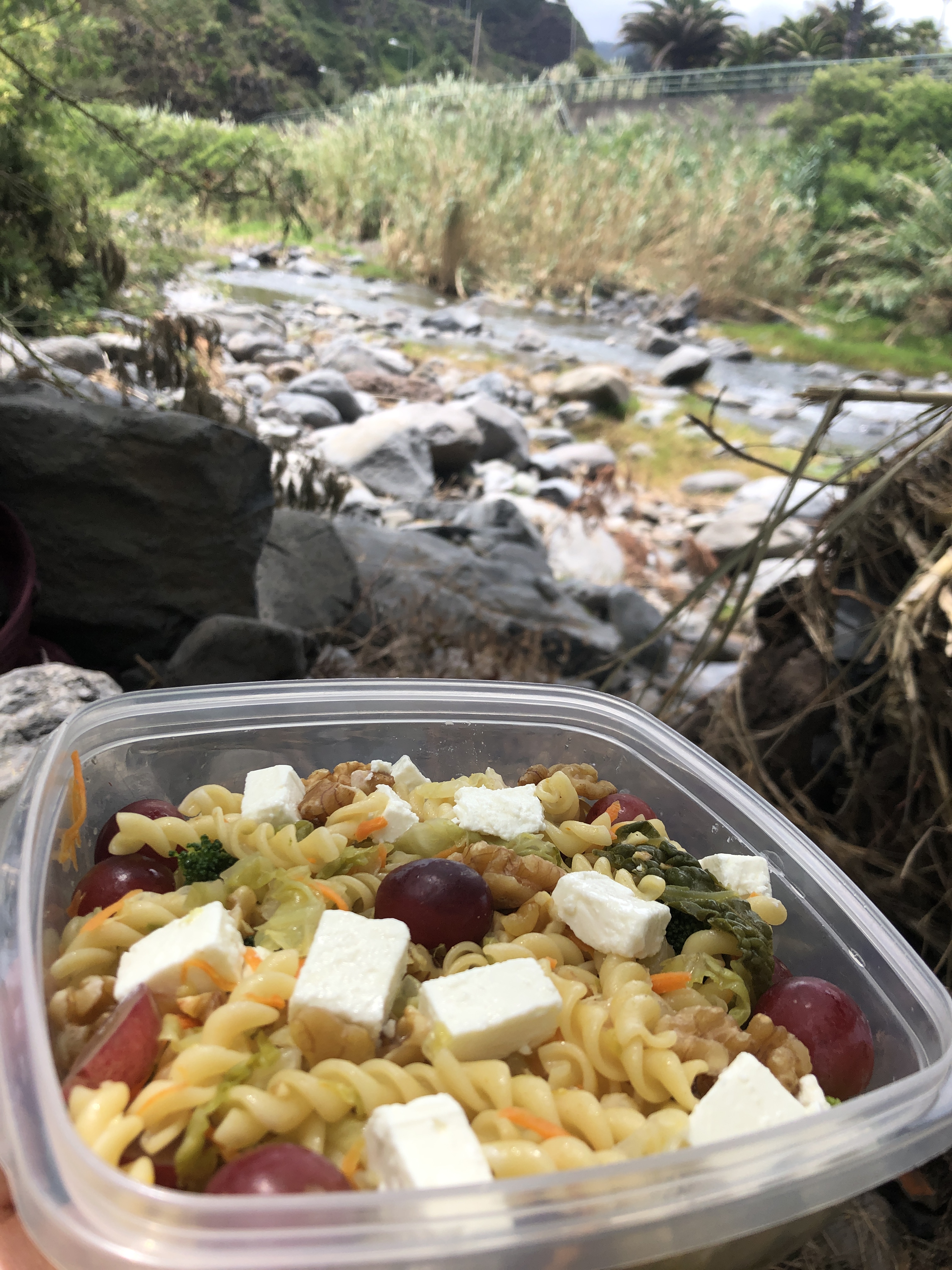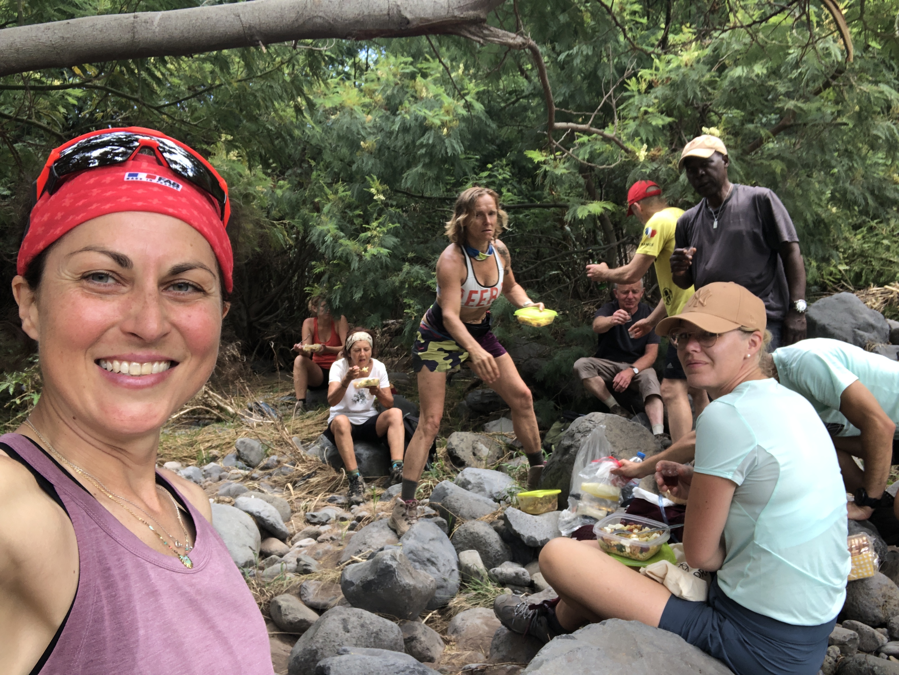 Nous attendons la fin de la descente et un espace à l’ombre au bord d’une rivière pour apprécier notre salade maison du jour.