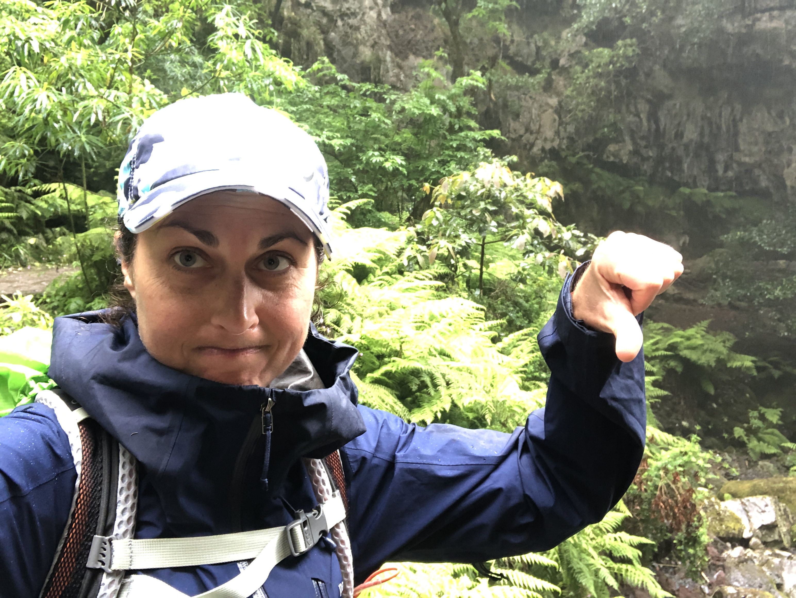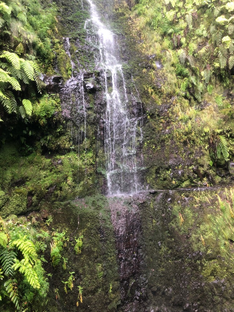 Dans cette forêt primaire classée à l’Unesco, nous observons toutefois cascades, nous traversons des tunnels et nous avalons des kilomètres le long des levadas. Les casquettes, kways et protège sac sont de sortie car la pluie rince bien.