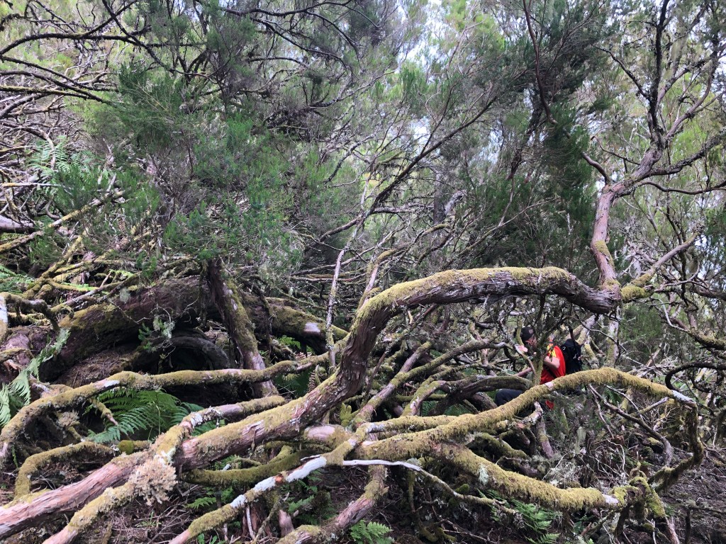 Nous redescendons ensuite vers Queimadas à pied. Geronimo, toujours au pic de sa forme, nous invente un chemin qui nécessiterait presque une machette pour couper les arbres qui se dressent devant nous…. Heureusement, nous sortons de ces 500 mètres de broussailles sans trop d’égratignures.