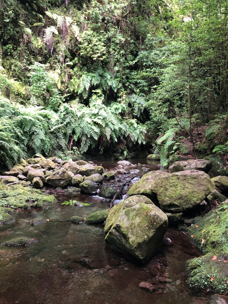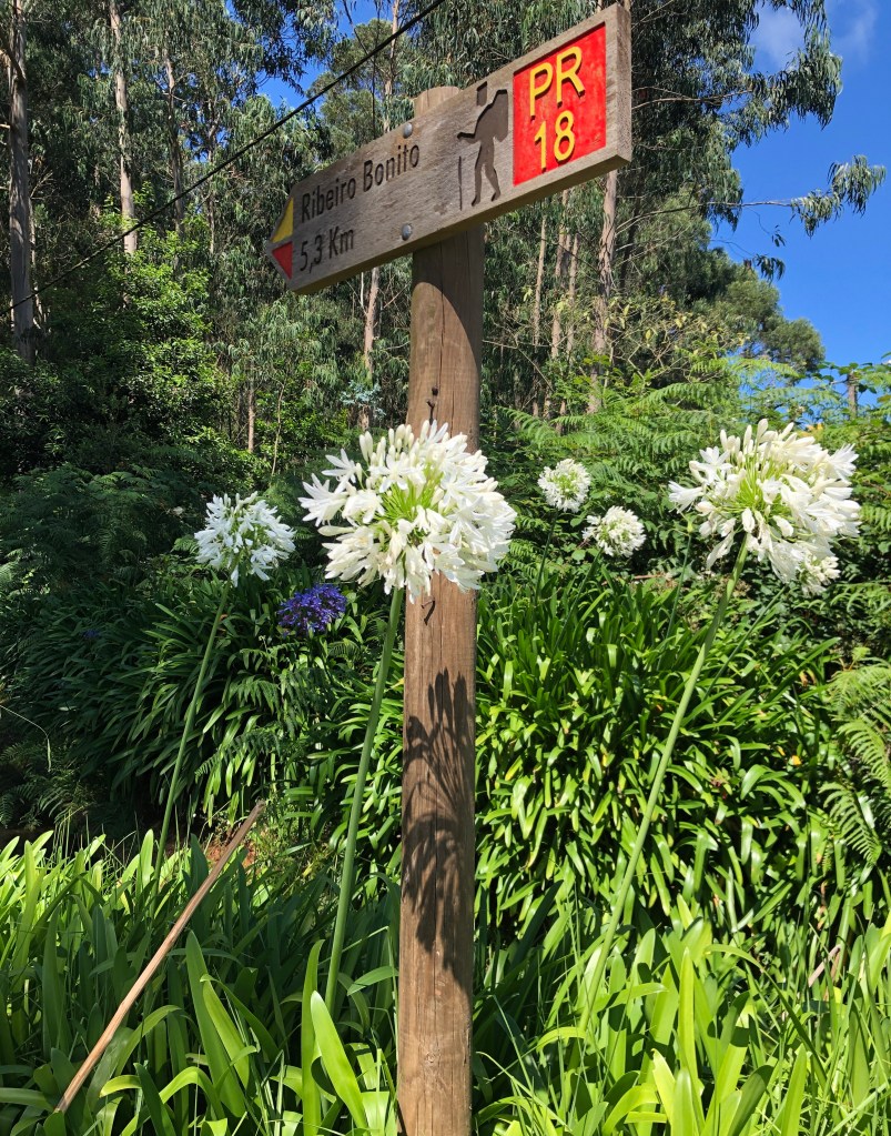 Pour inaugurer la journée, nous commençons donc par une marche (un peu inintéressante) en direction de Ribeiro Bonito et son PR18 (l’équivalent de nos GR). Tout plat, dans la verdure, en bordure d’une levada à destination d’une rivière.
