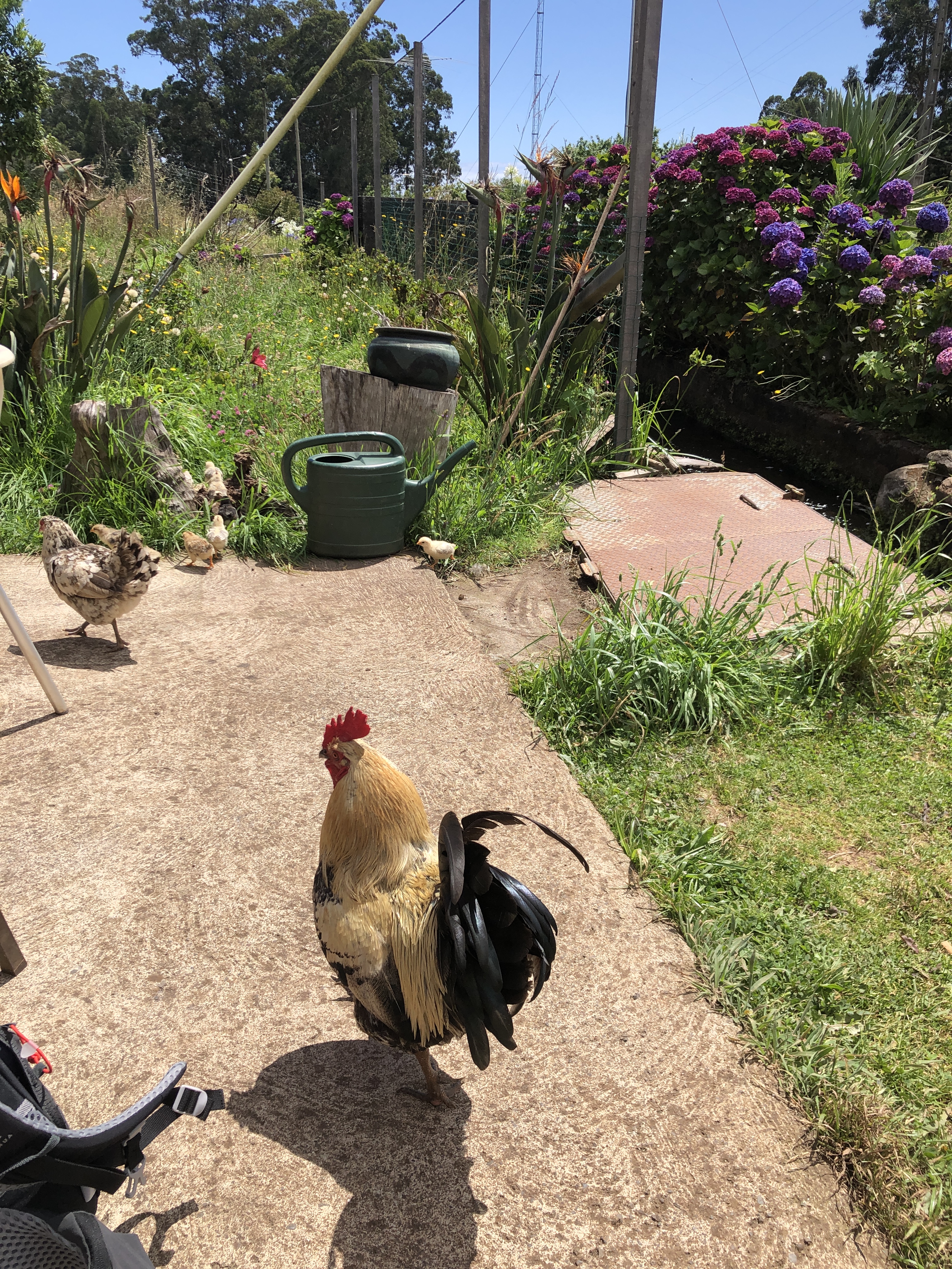 On ne sait pas pourquoi, Geronimo a, une nouvelle fois, voulu nous emmener à la plage. L’itinéraire était très sympa, au milieu des bananiers, des vignes et des innombrables fleurs.