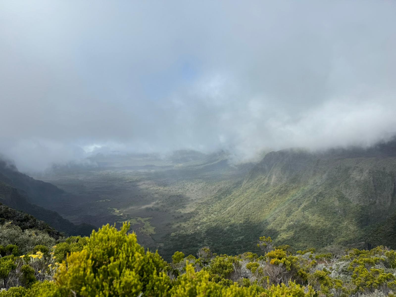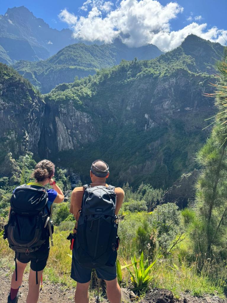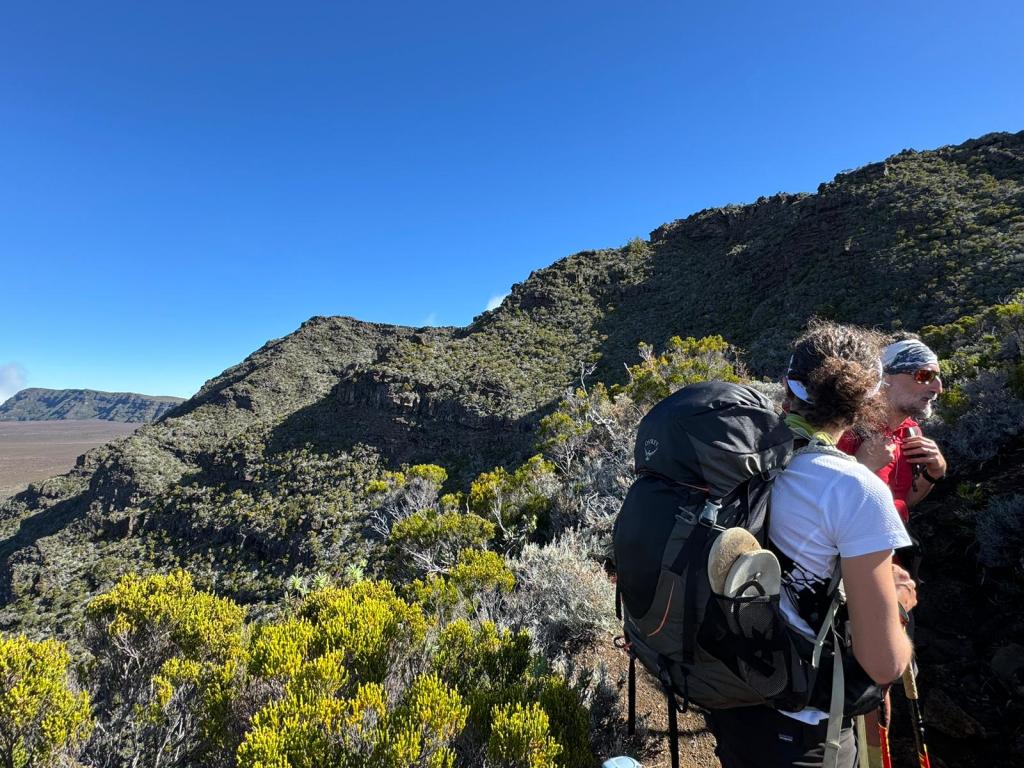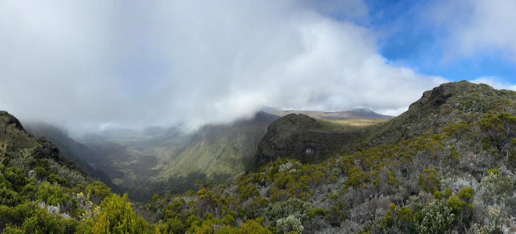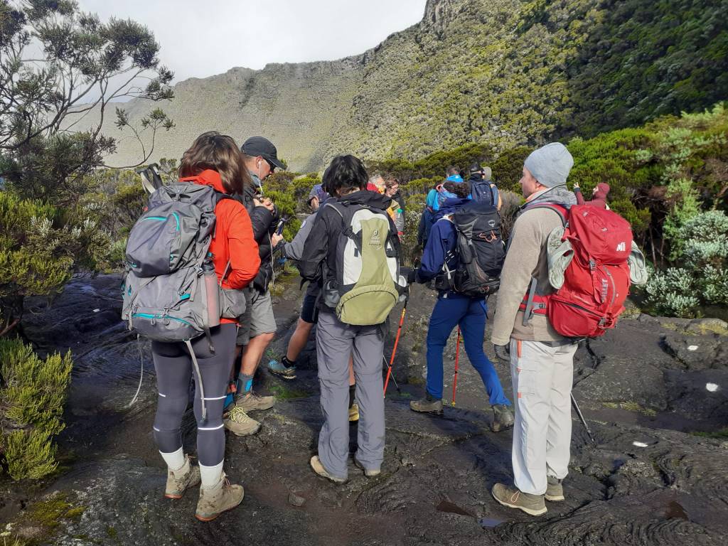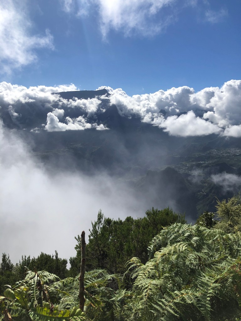 Une mini sieste au soleil puis nous filons vers le point de vue du Dimitile qui nous permet d’observer le massif du Piton des Neiges. On est vraiment monté sacrément haut vendredi !