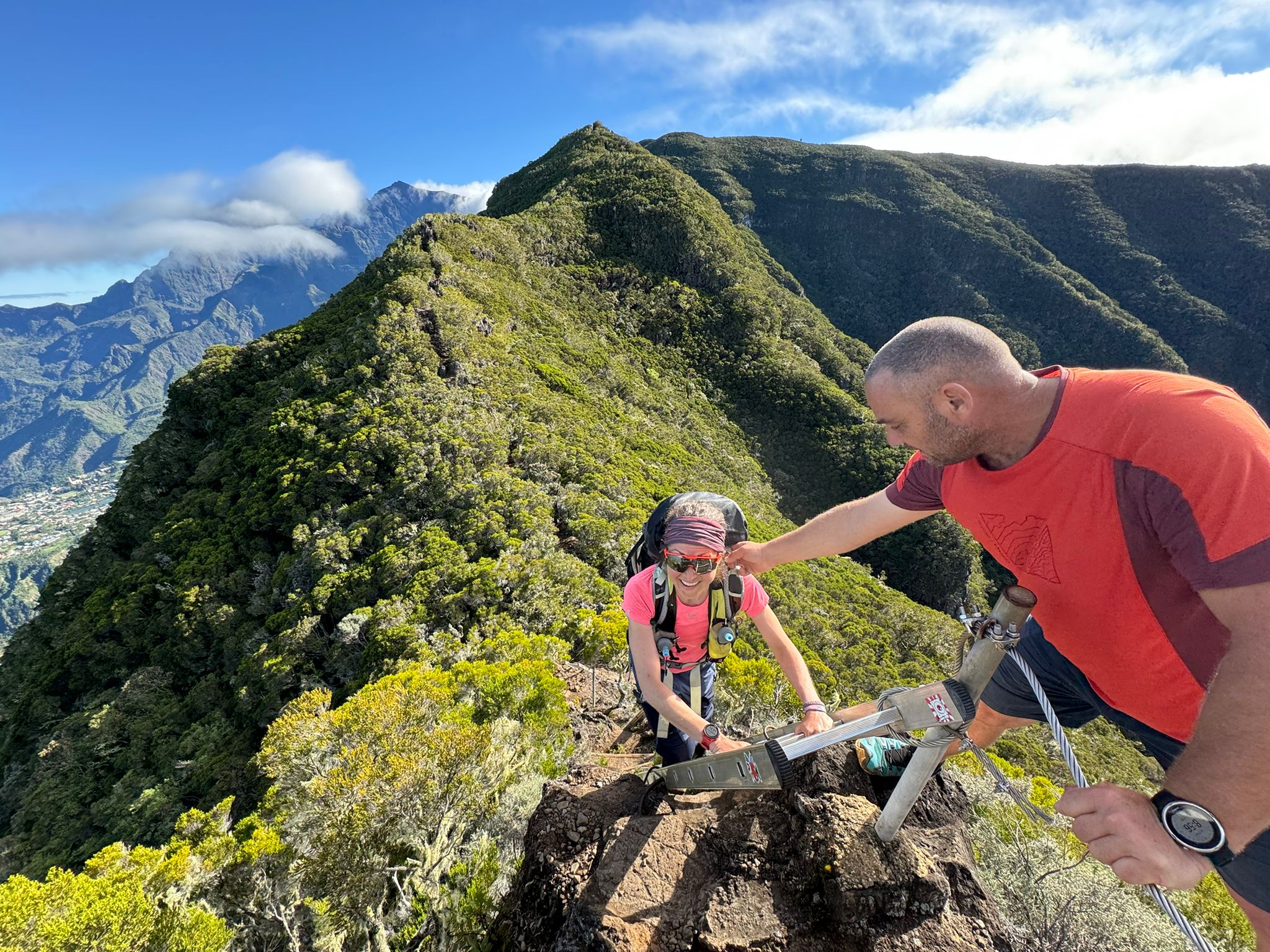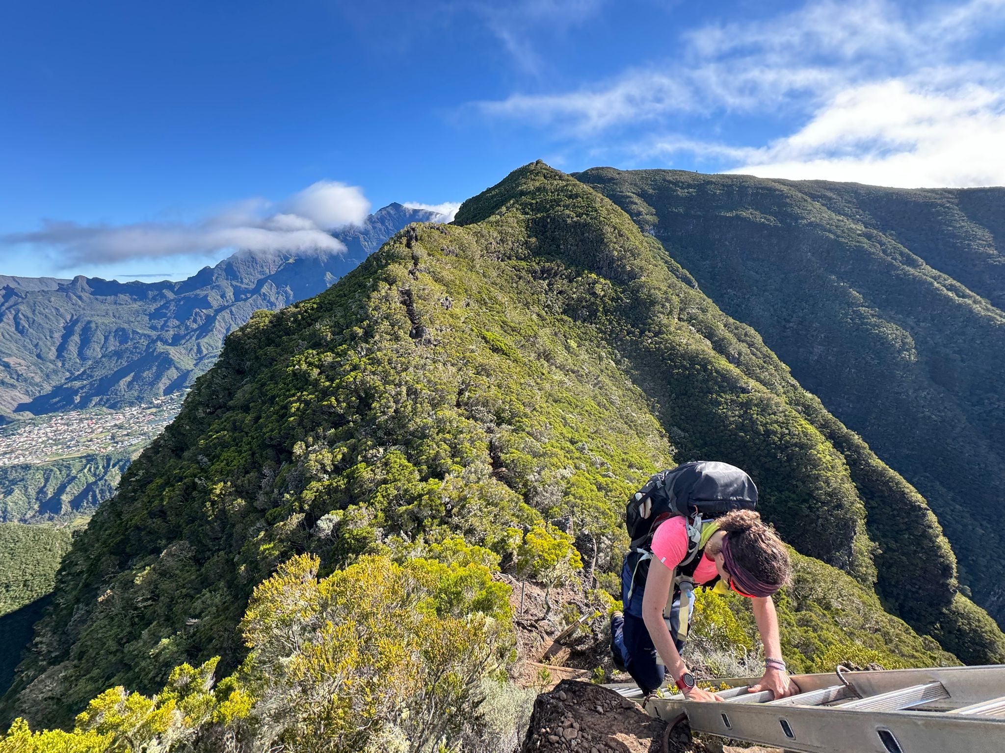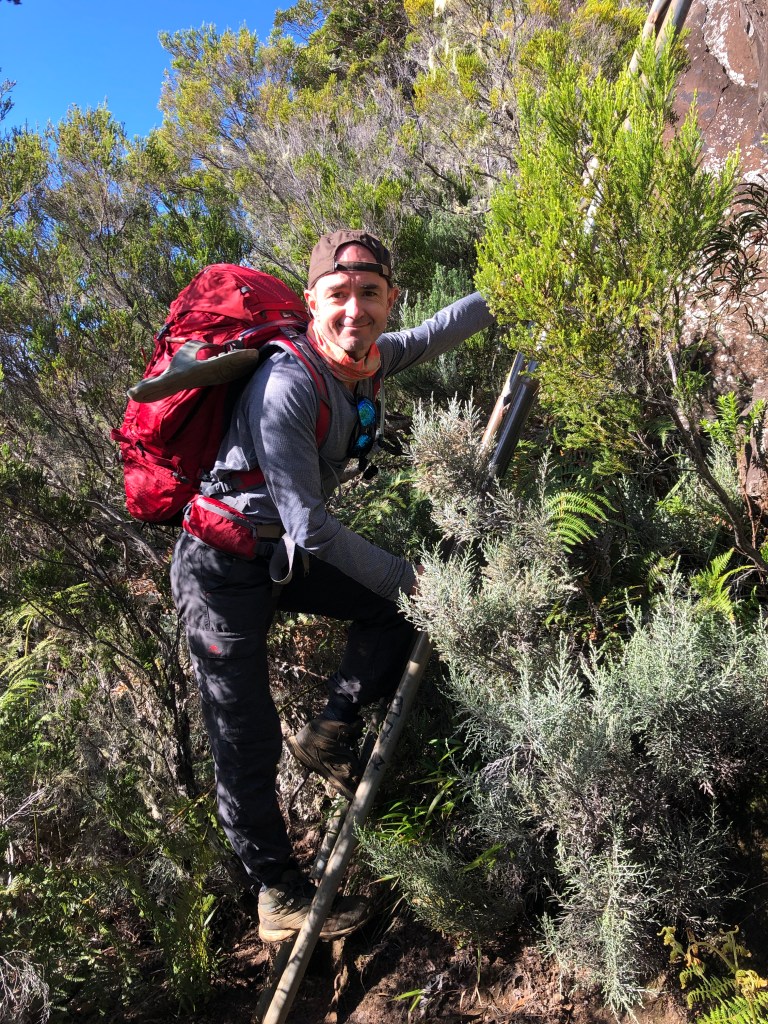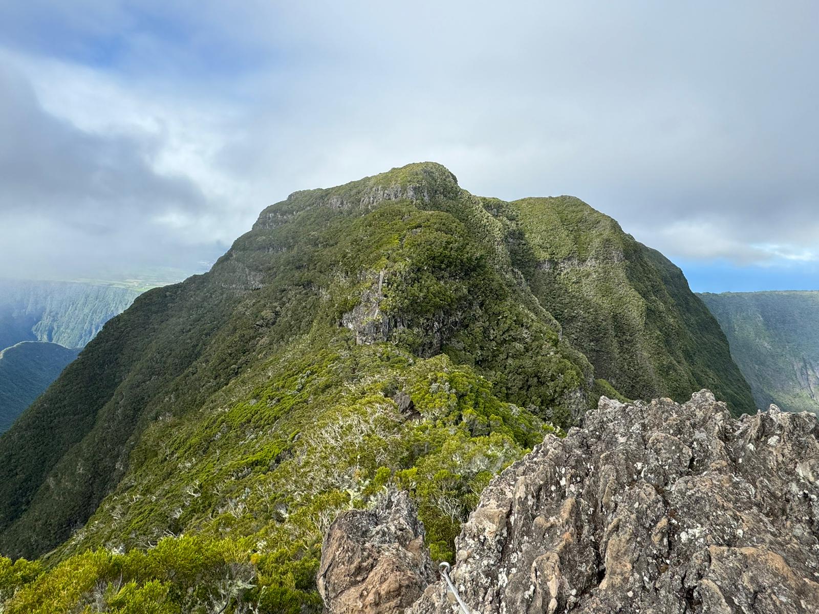 Une mini sieste au soleil puis nous filons vers le point de vue du Dimitile qui nous permet d’observer le massif du Piton des Neiges. On est vraiment monté sacrément haut vendredi !