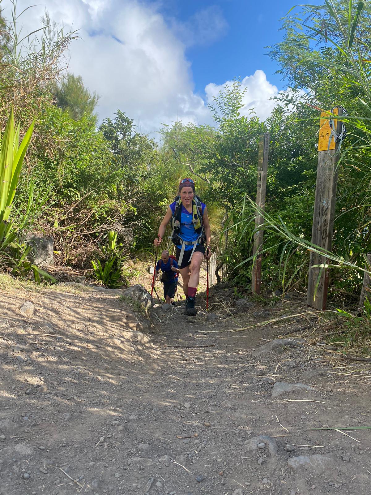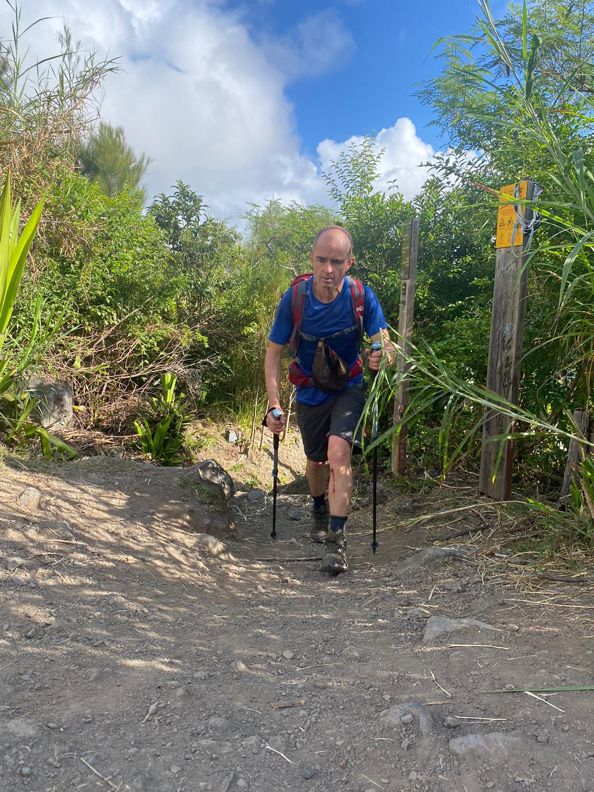 Heureusement, le début n’est pas trop compliqué avec 5km de bitume puis du sentier « gentil » – cela reste gentil façon Réunion quand même – et quelques cailloux pas trop teigneux pour une fois.