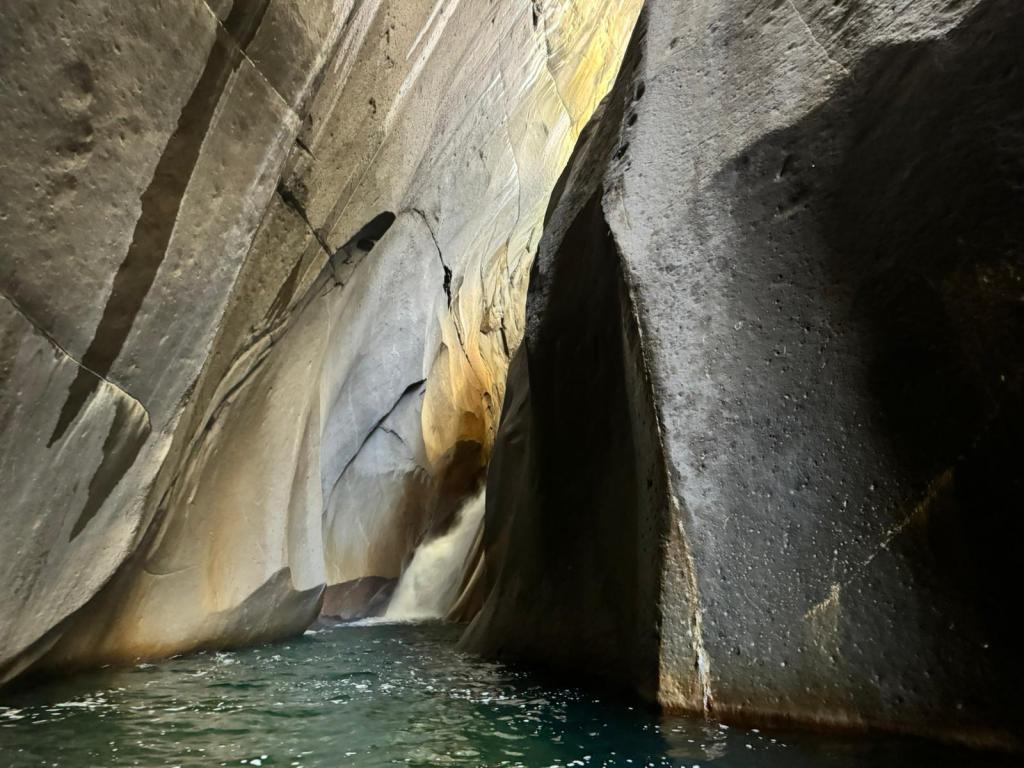 J’ai trouvé plus ardue la descente à pic qui a suivi, recouverte de plein de cailloux ultra glissants. Les mains et les fesses ont constitué des alliées utiles.