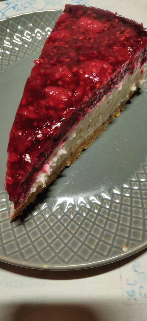 En apéro des beignets, en entrée une tarte de bredes (feuilles) de patate douce / saumon et en plat de résistance : riz / rougail chouchou morue / rougail saucisses. Et cerise sur le gâteau : un cheesecake à la framboise à tomber.