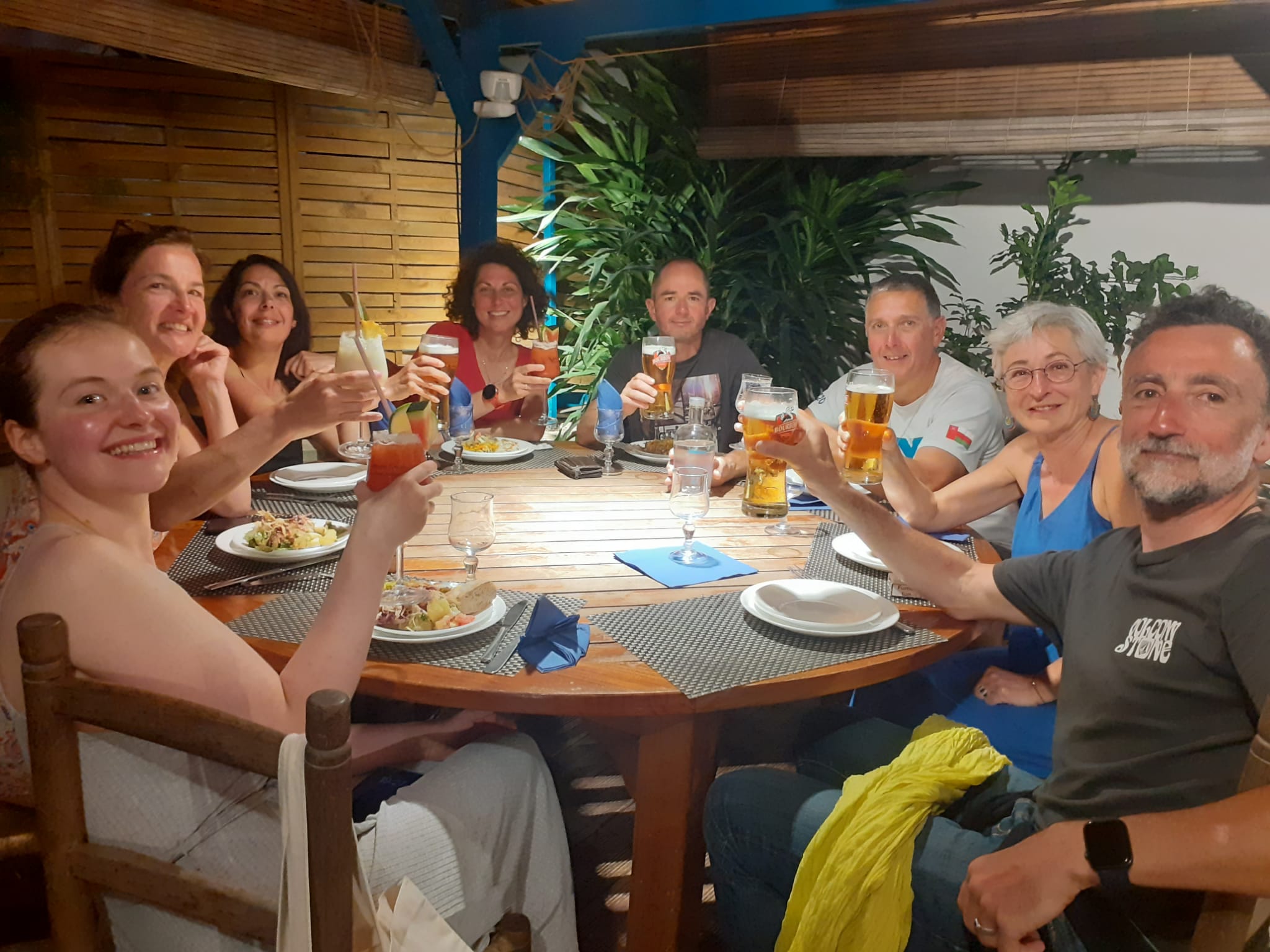 Nous discutons autour d’un Ti Punch jusqu’à ce que les cuisines nous disent que le repas est ouvert.